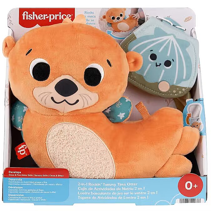 LongDesc - The “otter-ly” adorable 2-in-1 Rockin' Tummy Time Otter plush sensory toy from Fisher-Price grows with your baby from tummy time to sit at play. The otter comes with a soft book that features high contrast colours plus a self-discovery mirror and crinkle panel to stimulate baby’s developing senses. During tummy time, position the book’s mirror on the otter’s back for baby to see themselves. When your baby begins to sit up, the otter transitions to become a fun roly-poly toy that rocks back and forth and makes a fun jingle when baby bats play. Both the book and otter are perfect size for on the go fun too! Colours and decorations may vary.