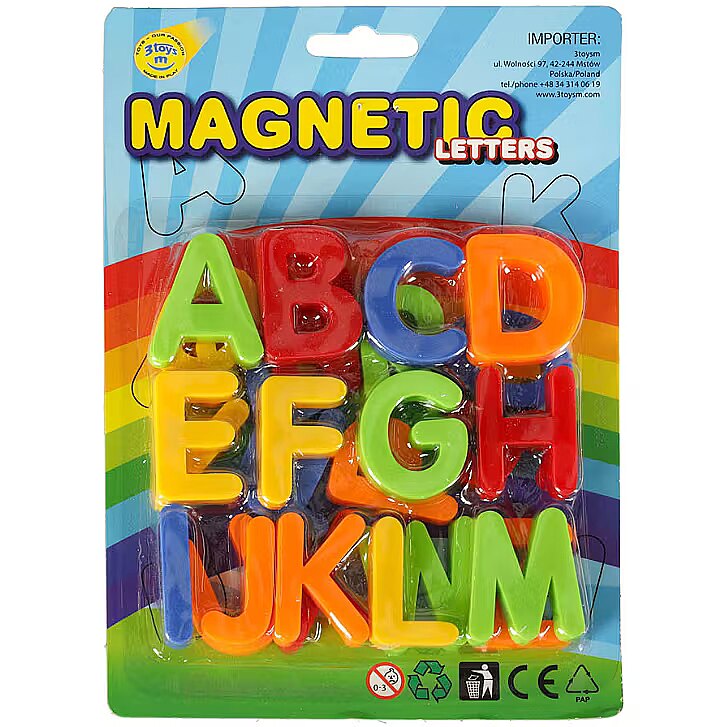 description_en - Two-sided board for children – one side is a chalkboard for writing with chalk, and the other side is a magnetic board. It comes with colourful letters with magnets to help learn the alphabet, as well as chalk, sponge, and marker to write or draw on the boards.