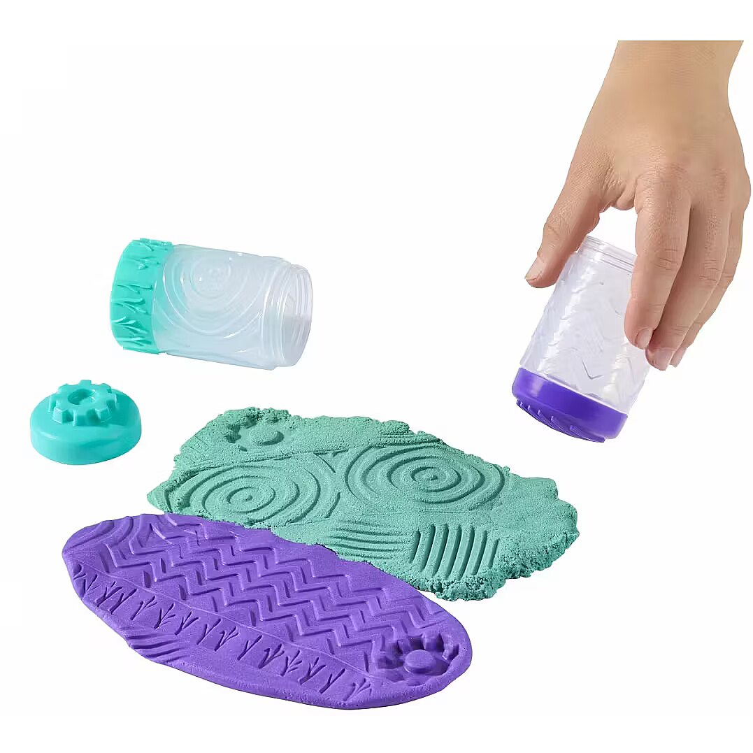 Gwarantuje świetną zabawę, dzięki dotykaniu naszej unikalnej masy I piasku! Zawiera naszą unikalną masę i piasek Wonder Factory nie wysycha i jest bezglutenowy! Narzędzie 4-w-1: Roluj! Stempluj! Łącz! Przechowuj! Zrównoważone opakowanie; każdy pojemnik z masą i piaskiem jest częścią zabawy z wzorami, stemplami i innymi dodatkami! Zawiera: 1 tubkę piasku i 1 tubkę masy, 2 nakrętki z różnymi stemplami do twojej masy i piasku oraz 1 łącznik z wzorami do wytaczania w twojej masie i/lub piasku. Możesz wymieszać masę i piasek, aby stworzyć nowy związek o innej teksturze. Tyle wesołych kolorów do zabawy!