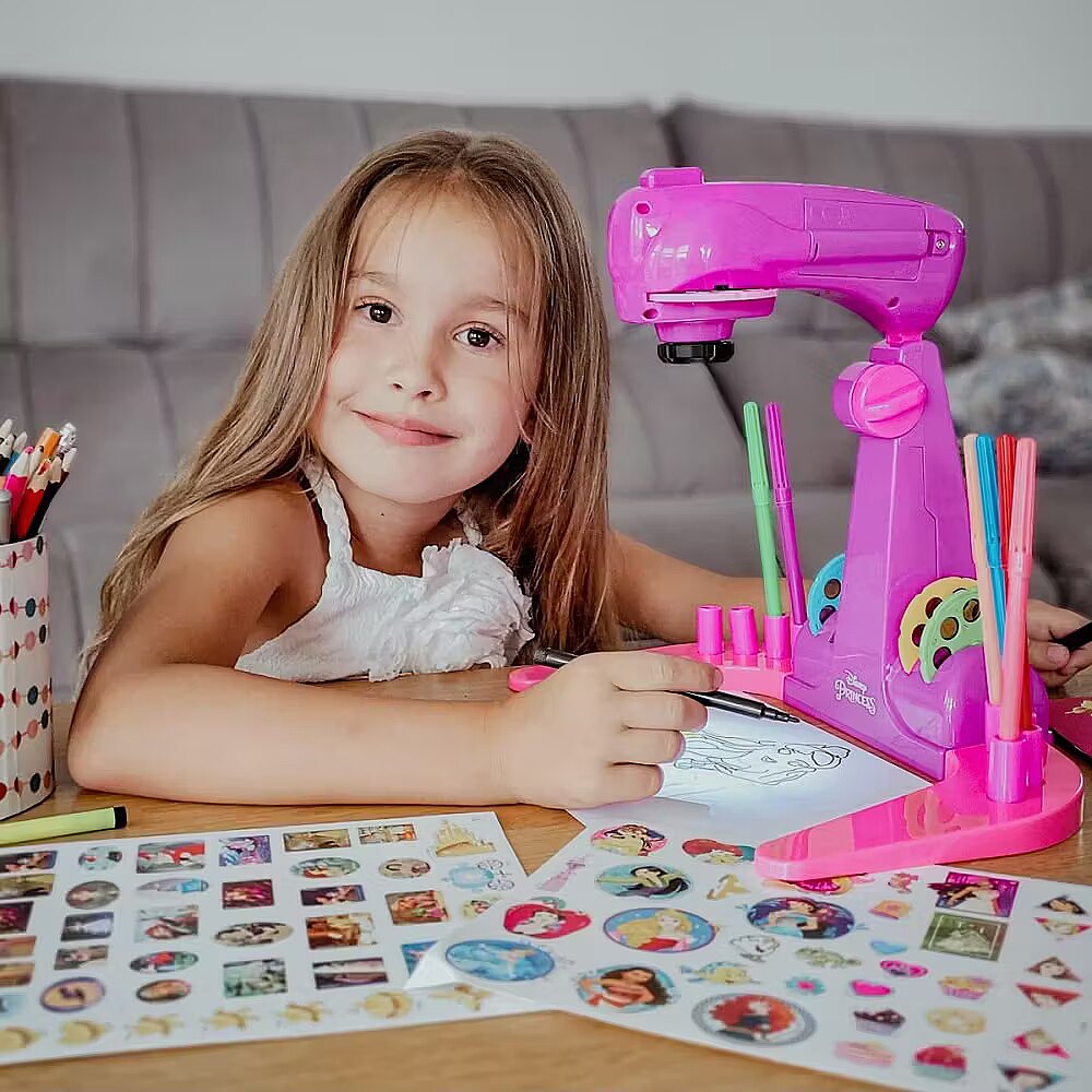 Description - Pozwól swojemu dziecku wkroczyć do bajkowego uniwersum Księżniczek Disneya, gdzie nauka rysowania ulubionych bohaterek staje się fascynującą przygodą. Projektor LED w prosty sposób wyświetla wybrany obraz (jak Kopciuszek, Elsa, Roszpunka czy Bella) na kartce, umożliwiając łatwe obrysowanie konturów. To doskonały pierwszy krok w świecie plastyki, który buduje pewność siebie i zachęca do dalszych twórczych eksploracji.