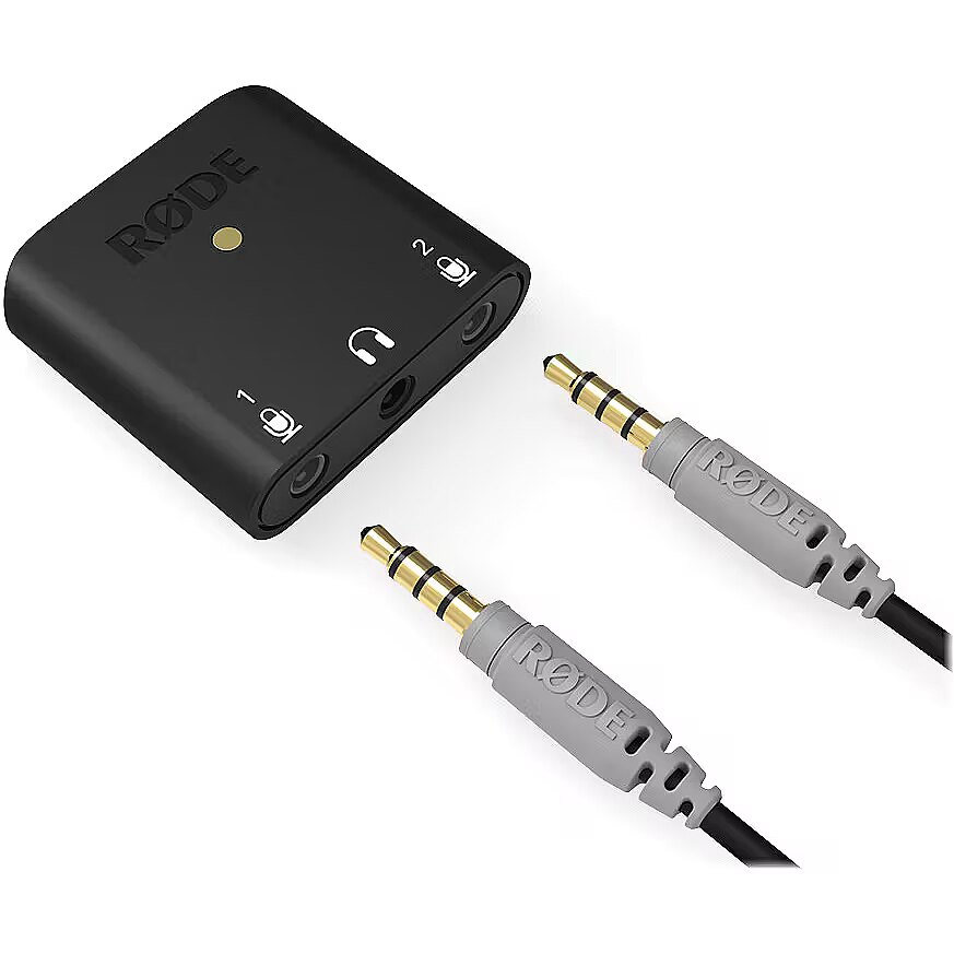 The AI-Micro is an ultra-compact dual-channel interface for recording high-quality audio to a mobile device or computer. Featuring two auto-sensing inputs for connecting virtually any microphone with a 3.5mm output, headphone monitoring, a universal USB output for use with smartphones, tablets and computers, and compatibility with RØDE apps for supercharged sound, the AI-Micro allows you to record without limits. Ultra-compact dual-channel audio interface for computers and mobile devices Compatible with virtually any microphone with a 3.5mm output, including RØDE VideoMics, lavaliers, wireless systems and stereo microphones​ Auto-sensing inputs for connecting TRS or TRRS microphones High-quality headphone output for zero-latency audio monitoring and playback Connects seamlessly to computers, smartphones and tablets via the universal USB output (USB-A, USB-C and Lightning cables supplied) Compatible with the RØDE app suite for expanded features and functionality, on-the-go configuration and broadcast-quality recording on any device
