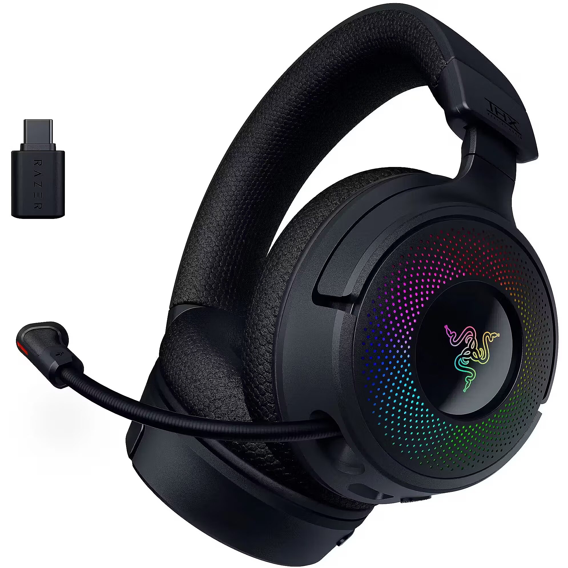 description_short_en - Wireless headset with THX spatial audio TriForce 40 mm drivers & memory foam earcups Retractable Razer HyperClear Super Wideband mic Tri-mode connectivity: 2.4 GHz, Bluetooth & wired RGB light effects & 70-hour battery