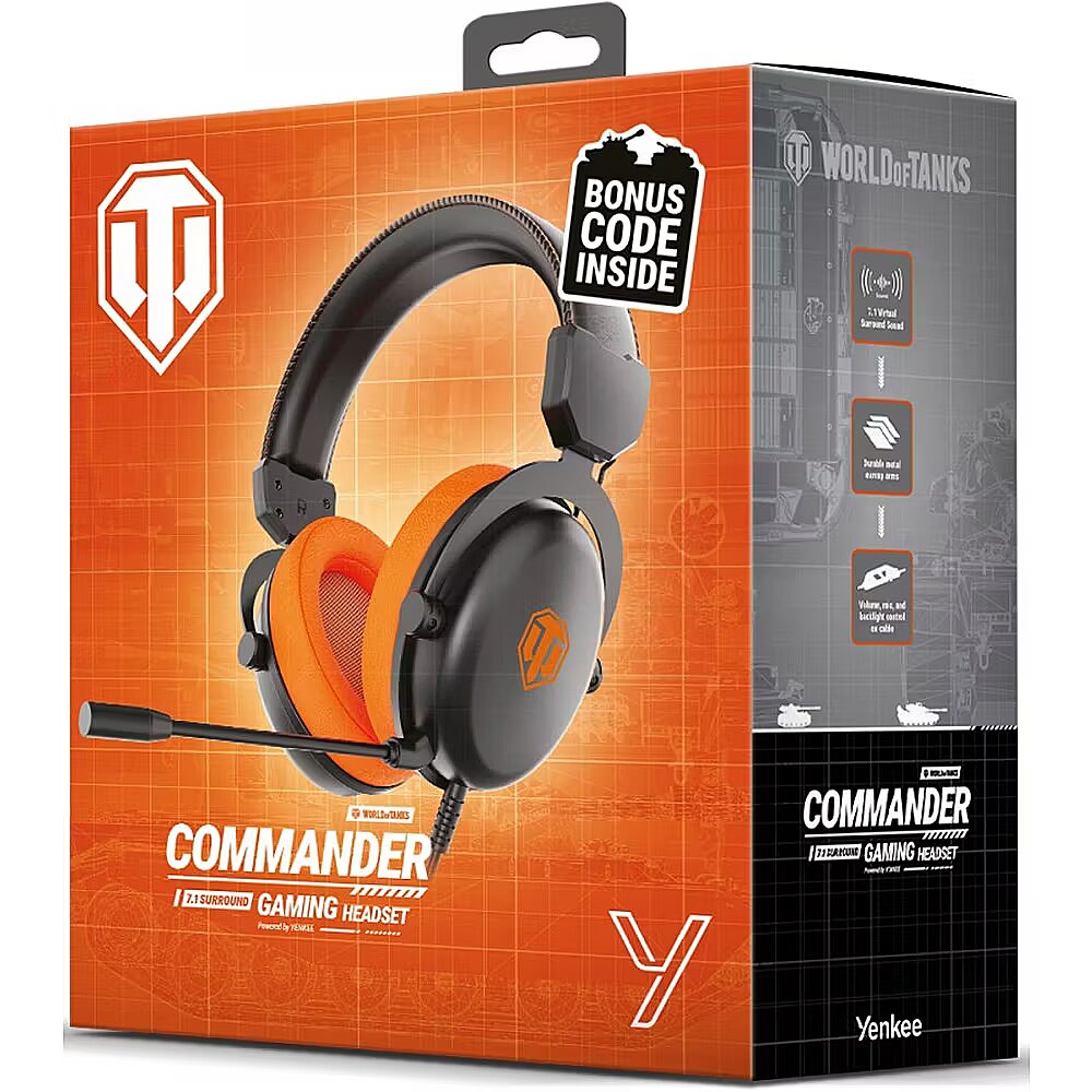 Take your gaming skills to the next level with the COMMANDER headset and experience unparalleled sound quality and comfort. Whether youre exploring new worlds, engaging in epic battles, or simply enjoying your favorite music, the COMMANDER headset delivers an unparalleled audio experience. Dominate the competition with COMMANDER. This exclusive gaming headset from YENKEE is part of officially licensed World of Tanks gaming accessories 7.1-channel COMMANDER headset 7.1-channel virtual surround sound Metal ear cup arms Volume, microphone and lighting controls on the cable