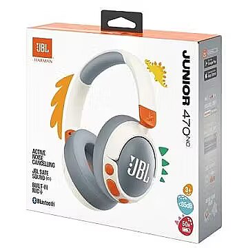 JBL Junior 470NC wireless noise-cancelling over-ear headphones introduce a whole new generation to JBL Sound at volumes that are safe for their ears. They won’t go beyond 85dB, protecting young listeners from dangerous sound levels, and feature Active Noise Cancelling, so a noisy environment won't make kids want to crank up the volume. You can use the JBL Headphones app to customize their maximum volume and daily listening time, and get daily or weekly reports on your child's listening activity. Designed for kids, the JBL Junior 470NC are comfortable to wear, with durable oversized controls that are easy for even the littlest hands to use. Up to 50 hours* of battery life means long-lasting fun, and a built-in mic lets kids chat with family, friends, or teachers easily. They include a JBL sticker set so your little rockstars can personalize their look. Great sound has no age limit. JBL Safe Sound – JBL legendary sound designed to never exceed 85dB making them safe for even the youngest music fans Parental Control with Customizable Volume & Playtime Easy monitoring – the JBL Headphones app showa real-time reports on how long your child is listening and at what volume Active Noise Cancelling shuts out distracting external noise, so kids can enjoy their entertainment at a lower volume Built-in mic – Kids can easily chat with friends and family during downtime, or teachers while they’re busy learning 50-hour battery life and quick recharge with USB-C – 3 hours of battery life with only 5 minutes of charging Fit for kids – 12mm thick soft pad on the headband for long-wearing comfort, less sound leakage and better sound. The headband can be adjusted to the kids' head to improve the sound experience and follow the kids' growth Flat folding design makes them easy for kids to stow in a bag or backpack Easy child-friendly control buttons The plastic-free packaging folds into a fun device stand, and a playful JBL sticker set is included