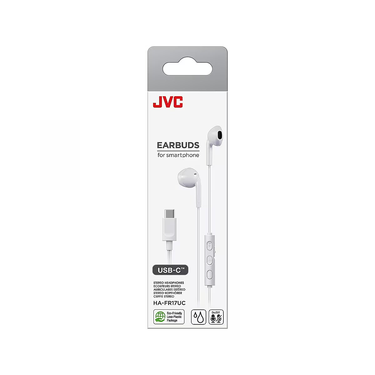 LongSummaryDescription - JVC Type C In Ear Wired White. Product type: Headphones. Connectivity technology: Wired. Recommended usage: Calls/Music. Weight: 16.6 g. Product colour: White