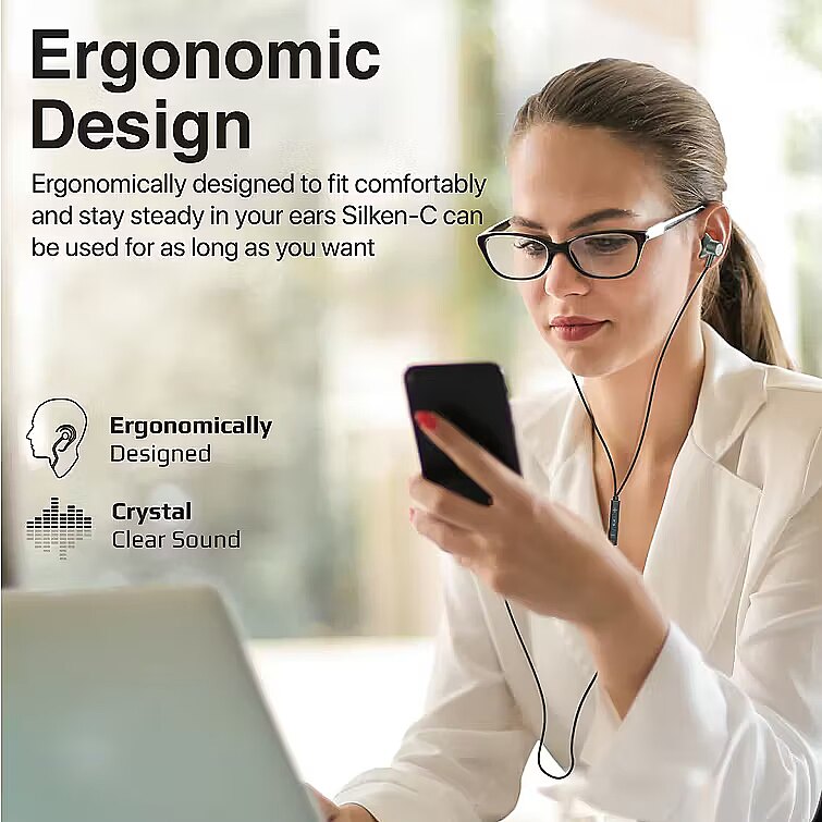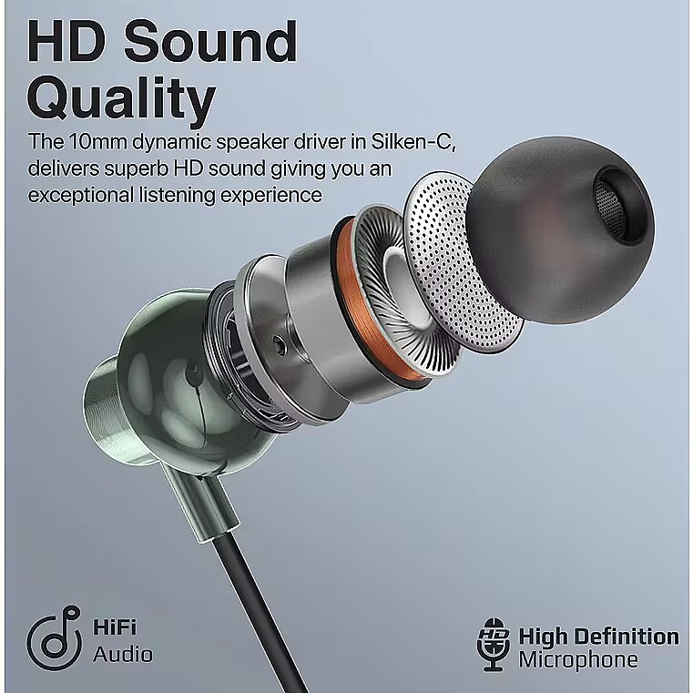 The 10mm dynamic speaker driver in Silken-C, delivers superb HD sound giving you an exceptional listening experience