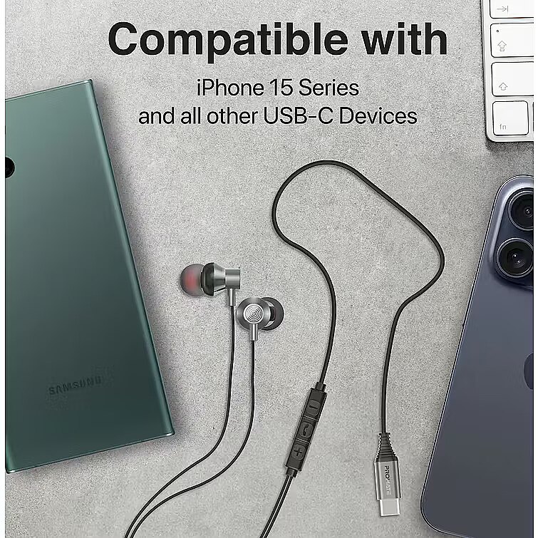 Enjoy deep bass response and finely tuned acoustics with Silken-C, in-ear wired earphones with a USB-C connector