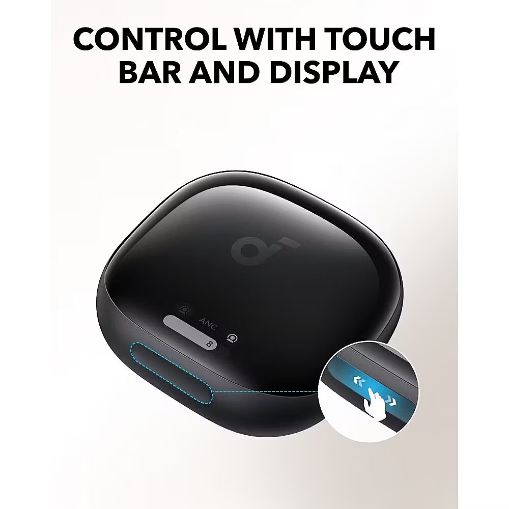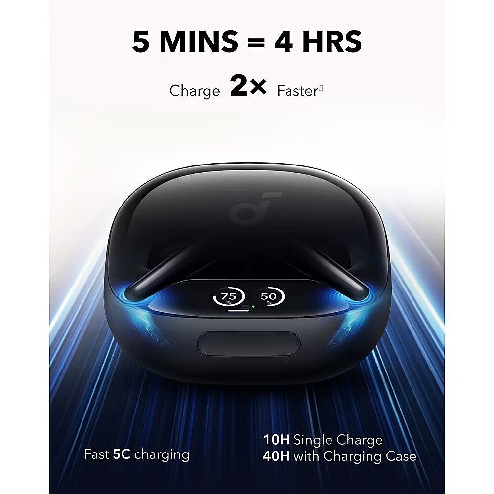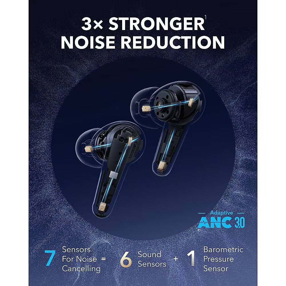 LongDesc - Enjoy Uninterrupted Music Journey with New True-Wireless EarbudsMatchless Noise Cancellation: 7 sensors detect noise from every angle. From planes to trains, enjoy a serene journey with 3× stronger noise reduction.Real-Time Adaptive Noise Reduction: Adapts to your ever-changing environment every 0.3 seconds, ensuring optimal, seamless noise reduction.Effortless Controls: The case's touch bar and display let you fine-tune the noise-cancelling levels at any time with a simple swipe on the case.Studio-Level High-Fidelity Music: Indulge in crisp, full-bodied sound with ACAA, a 10.5mm driver, a titanium-coated tweeter, and a digital crossover.Super Fast Charging: Charge 2× faster. A 5-minute refuel offers 4 hours of playtime. Up to 10 hours from one charge and up to 40 hours with the case.6-Mic AI Clear Calls: With a noise cancelling algorithm, a wind noise reduction tech, and six microphones, enjoy clear calls wherever you are.Liberty 4 Pro7-Sensor Precise Noise Cancelling1. Based on tests conducted in the soundcore lab, Liberty 4 Pro can reduce up to 12.2 dB more noise in the 600-700Hz range when tested from the opposite side of the earbud. This improvement is three times more effective than with the adaptive noise cancelling algorithm turned off. | 2. Calculated based on the recalibration frequency of the ANC algorithm, which is three times per second when no audio is being played. | 3. It charges twice as fast as Liberty 4 NC. | 4. LDAC enables the transmission of audio content at the maximum bitrate of 990kbps, which transmits 3× more data compared with standard SBC codec with the bitrate of 328kbps.You can turn on LDAC mode in the soundcore app. LDAC is only compatible with Android devices. | LDAC and LDAC logo are trademarks of Sony Corporation. | Hi-Res Audio logo and Hi-Res Audio Wireless logo are registered trademarks or otherwise trademarks of Japan Audio Society.React to Every Noise as You GoRecalibrates NoiseCancelling Every 0.3s² forEver-Changing Environments7-Sensor Precise Noise CancellingLiberty 4 Pro noise cancelling earbuds boast 7 sensors—6 sound sensorsand 1 barometric pressure sensor—to capture noise from every angle.From planes to trains, enjoy a serene journey with 3× stronger noise reduction.3× Stronger Noise ReductionFind your oasis of calm even in bustling city life and crowded flights. Six sound sensors, one barometric sensor, and a real-time algorithm ensure up to 3× stronger¹ noise cancellation.Control with Touch Bar and DisplayThe touch bar and display let you fine-tune, the noise cancelling levels of these wireless earbuds at any time with a simple swipe on the case.Super Fast ChargingLiberty 4 Pro noise cancelling earbuds charge 2× faster than the previousmodels with the 5C battery. A 5-minute recharge offers 4 hours of playtime.Enjoy up to 10 hours between charges, extendable to 40 hours with the case.Hi-Fi Sound with Rich DetailFeature the enhanced ACAA acoustic architecture, a 10.5mm bassdriver, a titanium-coated tweeter, and a digital crossover for peakdriver performance. Indulge in crisp, full-bodied sound perfectedwith nuances.
