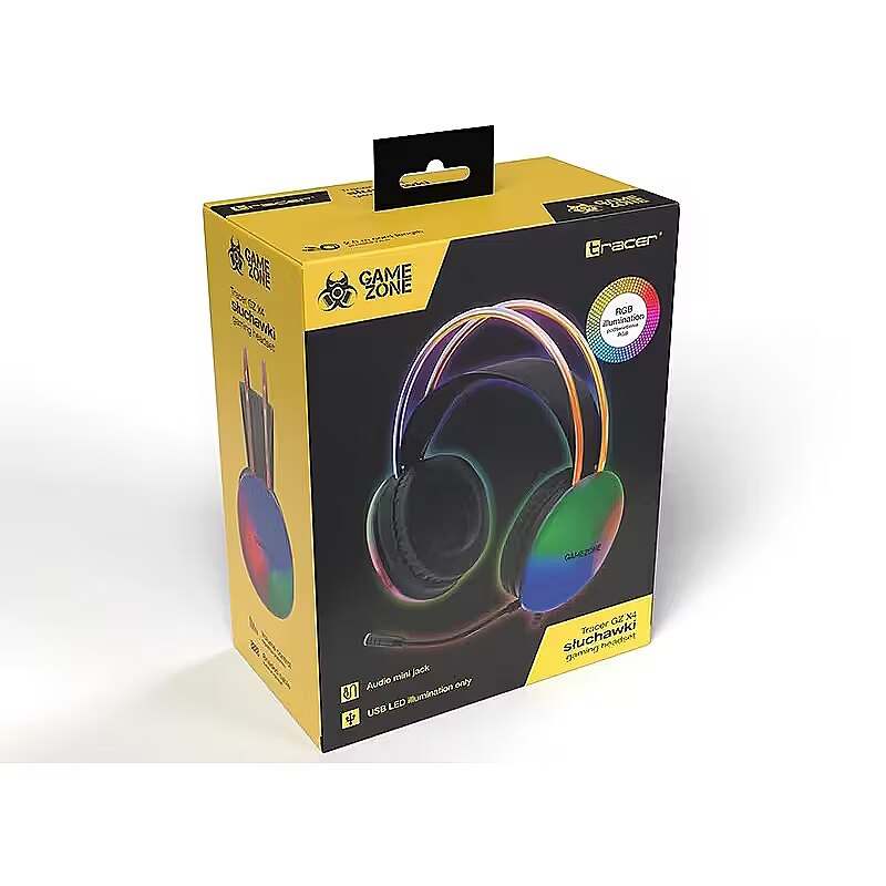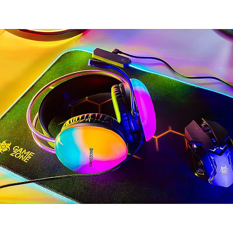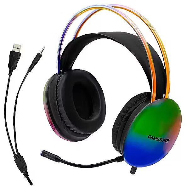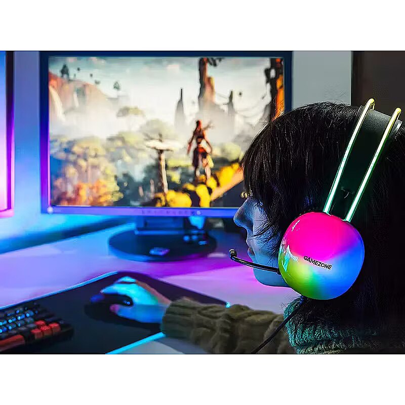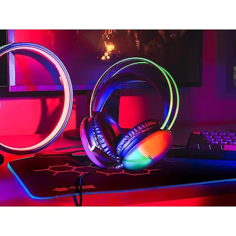 ShortDescription - słuchawki nauszne | przewodowe | podświetlenie RGB | kabel Jack 3,5 mm | elastyczny mikrofon | przetworniki 50 mm | lekka waga 240 g