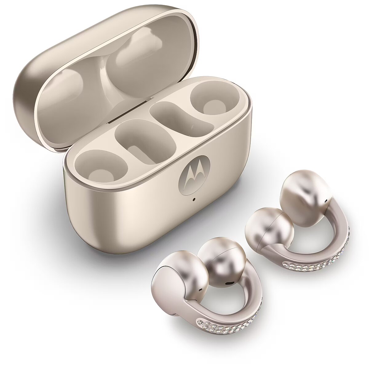 LongDesc - In tune with your worldIntroducing moto buds loop, sleek and lightweight earbuds designed to elevate your audio experience while keeping you connected to the world around you. With an open-ear design, moto buds loop delivers the aesthetic you want while providing the all-day comfort you crave. Stay in control of your busy day without missing a beat when paired with devices powered by moto ai.(1) Listen with unbelievable clarity and balance thanks to Sound by Bose. Experience crystal-clear calls with an advanced microphone system. And keep it all protected thanks to premium materials and a water-repellent design.(2) With up to 8 hours of nonstop battery(3) and plenty more in the case, you have all the power you need. moto buds loop is always in tune with you.