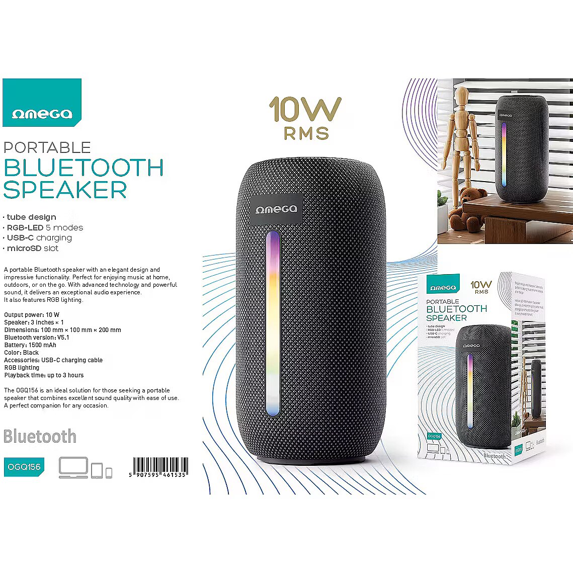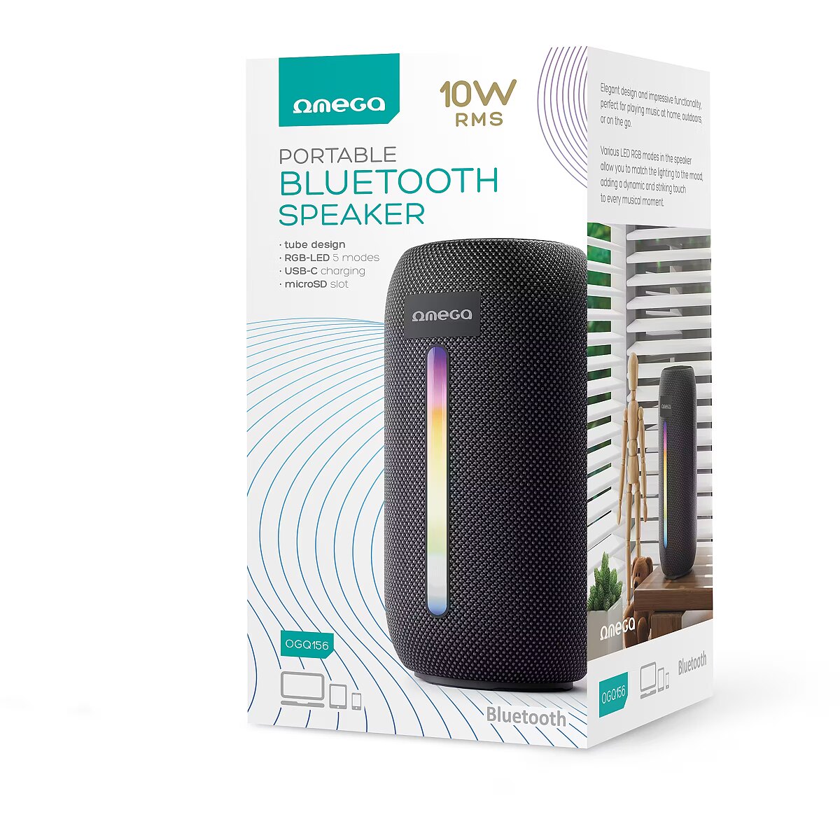description_en - The Omega Tube OGQ156 portable Bluetooth speaker is the perfect solution for listening to music and podcasts anytime, anywhere. Thanks to the wireless Bluetooth connection, you can easily pair it with your phone, tablet or laptop and enjoy your favorite music without the hassle of cables. Thanks to the built-in battery, you can enjoy music for up to 3 hours in a row. In addition, five RGB lighting modes create a mood and bring colorful vibrancy to the listening experience. The compact design makes it easy to carry, easily fitting into any bag. High-quality sound creates a pleasant listening experience at home, outdoors or on tour. Output power: 10 W – ensures clear and pure sound even at high volumes 3-inch speaker element – ​​compact, but with rich sound quality Bluetooth 5.1 ensures stable connection 5-mode RGB lighting 1500 mAh integrated battery allows for long listening to music on a single charge Battery lasts up to 3 hours Fast and convenient charging with USB-C charging cable Dimensions: 10 × 10 × 20 cm – easy to carry