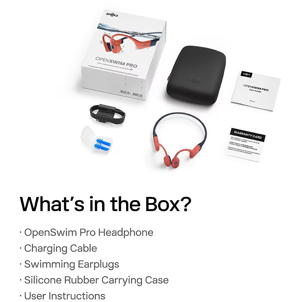 LongSummaryDescription - SHOKZ OpenSwim Pro. Product type: Headset. Connectivity technology: Wireless, Bluetooth. Recommended usage: Sports. Headphone frequency: 20 - 20000 Hz. Wireless range: 10 m. Weight: 27.5 g. Product colour: Grey