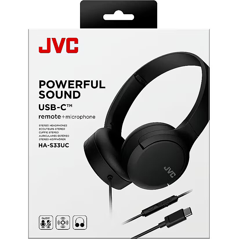 description_en - Brand JVCColour blackEar placement Over earForm factor Over earImpedance 16 ohmsNoise control NoneHeadphone jack USB-CModel name HA-S33UC-B-UConnectivity technology WiredIncluded components Headphones, User manual