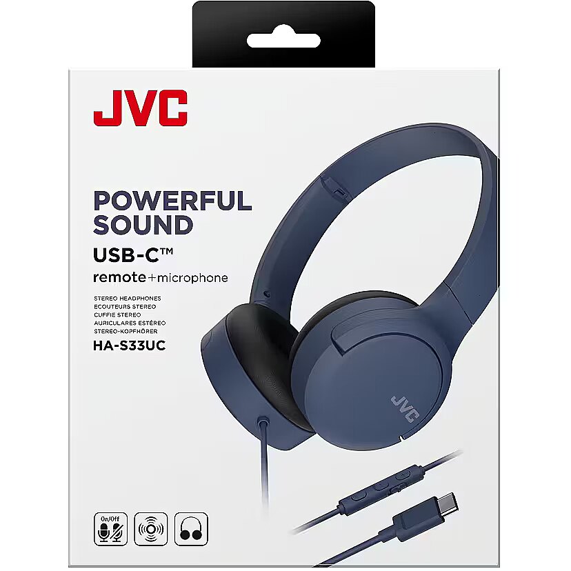 Title - JVC HAS33UC Headset Wired Head-band Calls/Music USB Type-C Black, Blue