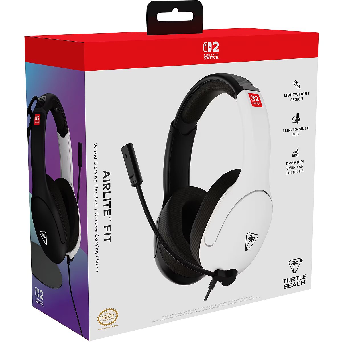 LongSummaryDescription - Turtle Beach Airlite Fit Black and White Wired Gaming Headset Officially Licensed for Nintendo Switch 2 and Nintendo Switch, and Nintendo Switch OLED – Flip-to-Mute Mic, Over-Ear Premium Comfort. Product type: Headset. Connectivity technology: Wired. Recommended usage: Gaming. Headphone frequency: 20 - 20000 Hz. Cable length: 1.15 m. Weight: 228 g. Product colour: Black, White