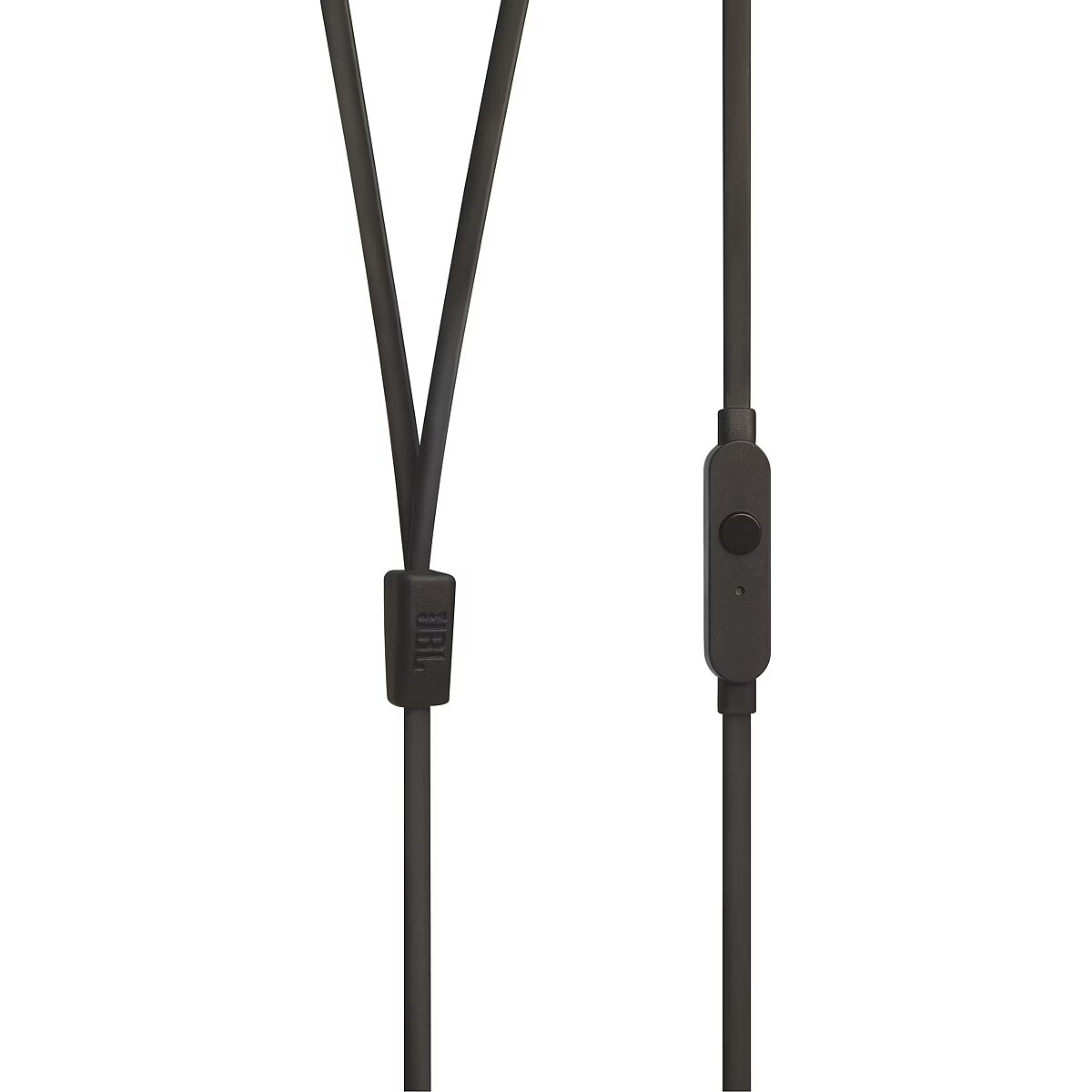 LongDesc - Introducing JBL T110 in-ear headphones. They’re lightweight, comfortable and compact. Under the durable earpiece housing, a pair of 9mm drivers punch out some serious bass, reproducing the JBL Pure Bass sound you’ve experienced in concert halls, arenas and recording studios around the world. In addition, the single-button remote on a tangle-free flat cable lets you control music playback, as well as answer calls on the fly with a built-in microphone. Making the JBL T110 your everyday companion for work, at home and on the road.For over 60 years, JBL has engineered the precise, impressive sound found in big venues around the world. These headphones reproduce that same JBL sound, punching out bass that’s both deep and powerful.