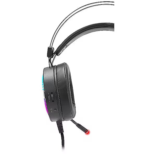 description_en - Kit yourself out with the Quyre RGB 7.1 gaming headset – a jaw-dropping, feature-rich headset for PC gaming sessions. Immerse yourself in a super-realistic gaming world with jaw-dropping, full-range 7.1 surround sound – you’ll also be able to hear your enemies before you see them as the headset lets you pinpoint noises with deadly accuracy. Meanwhile, you can do all this in supreme comfort thanks to the sumptuously thick padded earcups and headband – they’re so comfortable, you’ll almost forget you’ve still got this headset on. On top of these awesome features, you can customize the sound thanks to Quyre’s powerful software. And with its stunning glowing earcup cores featuring RGB lighting, you can bathe your gaming space in a cool kaleidoscope of 16.7 million colors and also boost up your gaming mood. High-quality gaming headphones 7.1 surround sound RGB lighting with 16.7 million colors Flexible microphone Comfortable & lightweight design Customizable audio through software Illuminated microphone tip Large headphones with super-soft ear pads Intense vibration effects Buttons on the left headphone Braided cable Connection: USB-A Cable length: 2.2 m Dimensions: 190 x 230 x 105 mm Weight: 385 g (including cable)