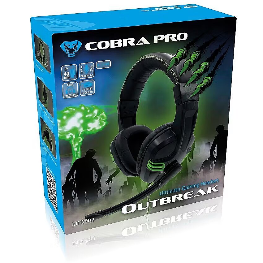 Description - Media-Tech presents computer headphones from Cobra Pro series of gaming accessories. Headphones Cobra Pro Outbreak MT3602 are dedicated to all computer gamers. Large ear cushions made of artificial leather filled with soft plush guarantee comfort during long hours of use. Headphones perfectly drown out the sounds coming from outside allowing to focus on the game or conversation. Cobra Pro Outbreak headphones are equipped with a small, very sensitive, adjustable microphone on the headband. Large 40mm speakers offer full sound experience while playing your favourite computer games or watching movies.