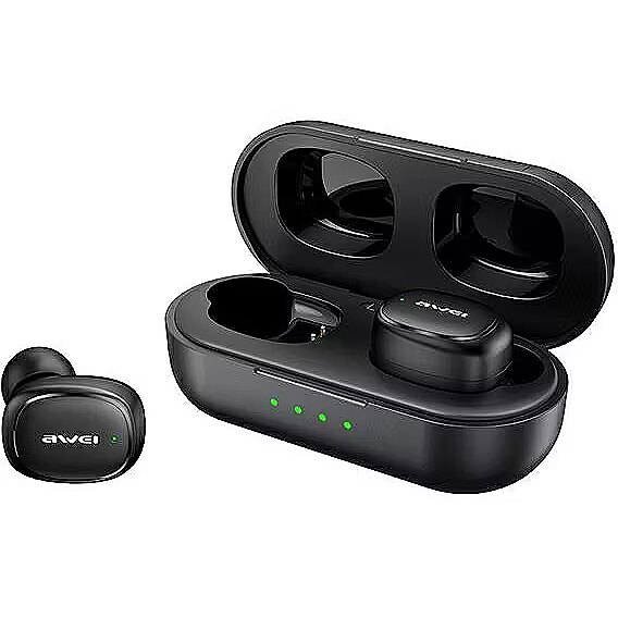 Description - AWEI T13 Pro compact, ergonomic, wireless headphones with a charging station. The included docking station, which is a power bank and charger, in one easy way extends the capabilities of these compact headphones.