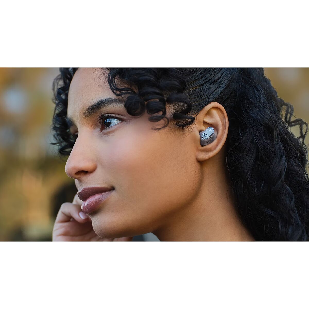 Transparency mode blends your listening experience with the world around you. External-facing microphones capture ambient sound to mix in with your music when you need to be aware of your surroundings. Beats Studio Buds + has up to 2× improved Transparency. Surrounds You in Sound