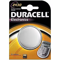 LongSummaryDescription - Duracell DL2430. Battery type: Single-use battery, Battery technology: Lithium, Battery voltage: 3 V. Width: 24.5 mm, Depth: 24.5 mm, Height: 3.2 mm. Type: DL2430