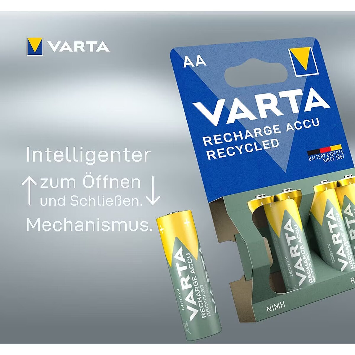 Technical_details - Type: battery EAN: 4008496931583 Manufacturer number: 56816101404 Suitable for: toys Compatible with: Compatible with all chargers and applications, e.g. electronic toys. Quantity: 4 pieces Designation: HR6 Technology: Nickel Metal Hydride Battery type: AA (Mignon) Voltage: 1.2 volts Capacity: 2.1Ah Feature: Rechargeable