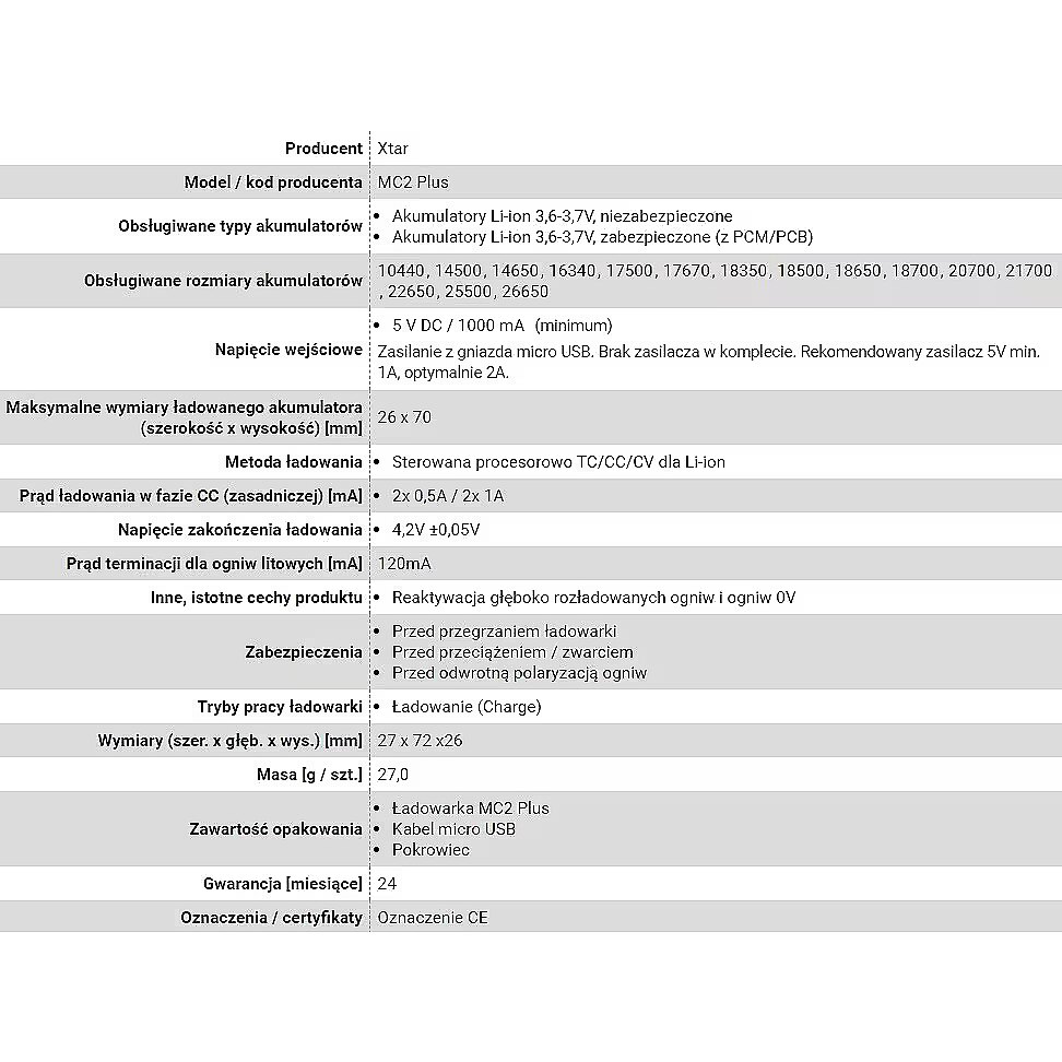 productName - Battery charger for cylindrical Li-ion batteries 18650 Xtar MC2 PLUS