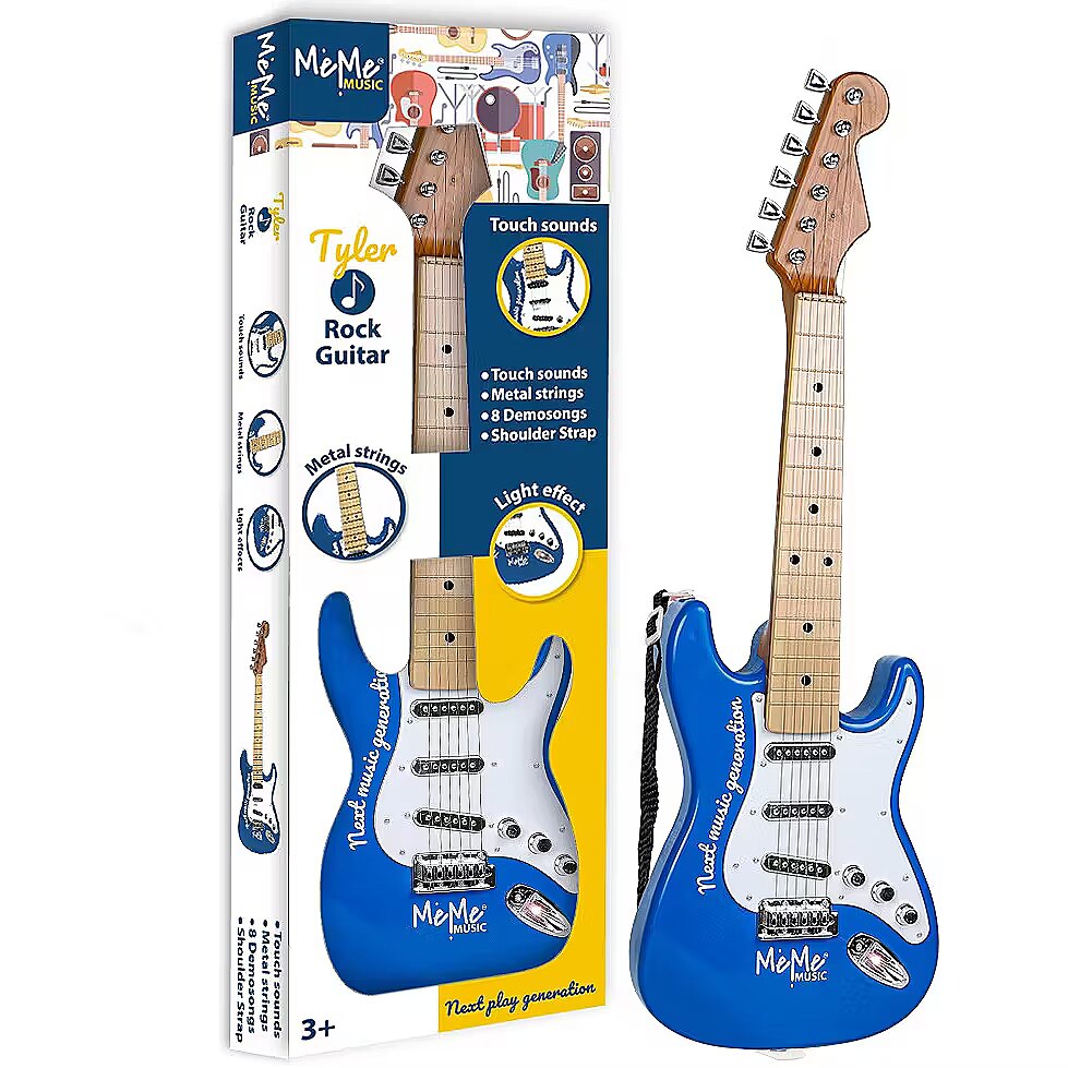 Description - Gitara elektryczna Meme Elektroniczna gitara. Instrument zawiera 6 metalowych strun i wydaje rockowe dźwięki. Zawiera pasek naramienny i 8 piosenek demo. Baterie nie są częścią zestawu.