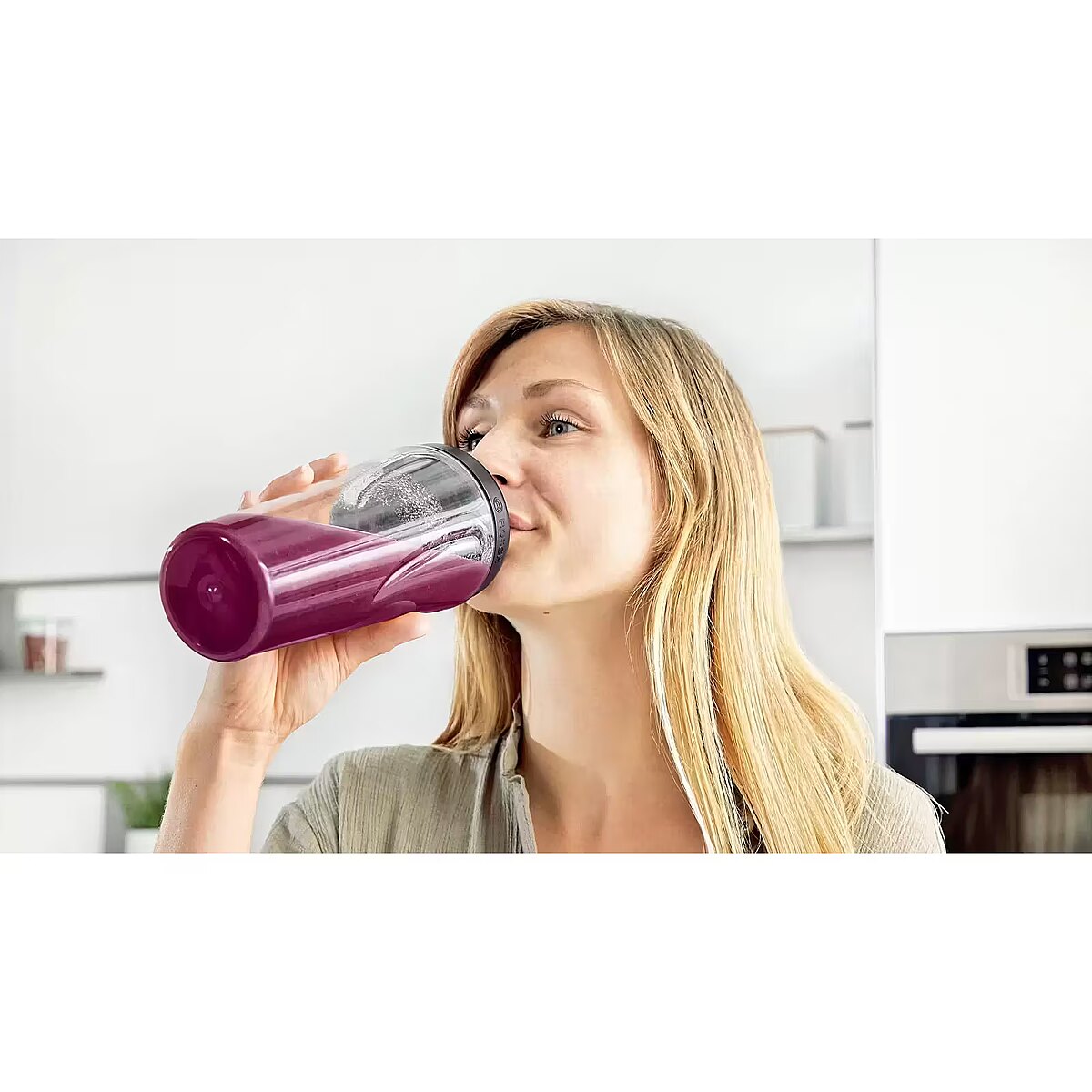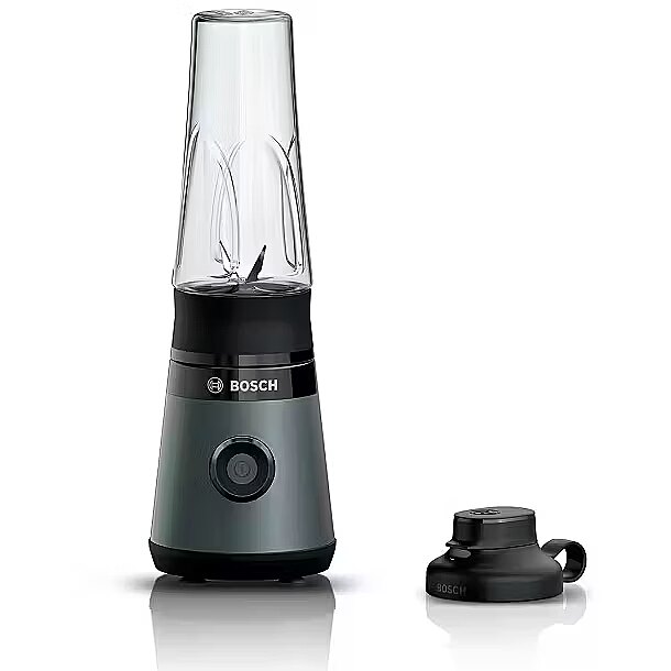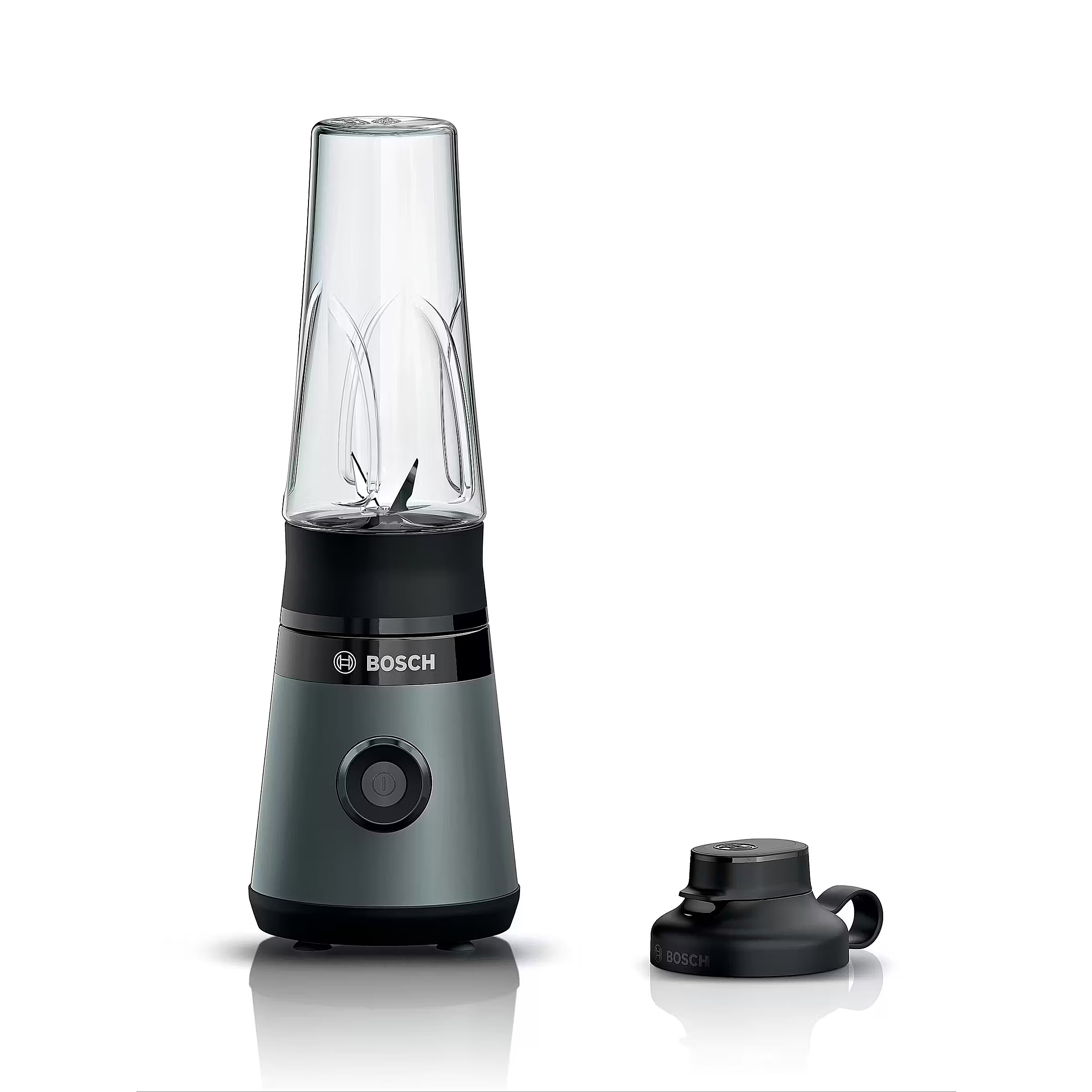 Description - Przygotuj doskonale gładkie smoothie. Doskonale gładkie smoothie przygotujesz bez wysiłku dzięki wysokiej prędkości blendowania (do 40 000 obr./min.), współdziałaniu mocnego silnika (450W), trwałym ostrzom i specjalnemu kształtowi ścianek kielicha, który optymalizuje przepływ składników. Oczekuj szybkiego, łatwego i bezwysiłkowego przygotowania koktajli nawet przy użyciu mrożonych czy twardych składników. Kremowe smoothies w kilka sekund. Przy użyciu mini blendera Bosch uzyskasz najlepsze rezultaty i pyszny koktajl czy smoothie tylko w 30 sekund. Doświadczenie firmy Bosch w produkcji urządzeń kuchennych od 1955 roku pozwoliło stworzyć wysokowydajny silnik o mocy 450 W i prędkości obrotowej do 40.000 obr./min. Możesz więc blendować i relaksować się bez obawy o przegrzanie silnika. Efektywne blendowanie dzięki trwałym ostrzom. Gładka konsystencja to zasługa wydajnych ostrzy. Ostrza ProEdge ze stali nierdzewnej są niezwykle trwałe. Krawędzie ostrzy zostały wzmocnione, co zapewnia im długotrwałą wytrzymałość. Beztrosko ciesz się koktajlami, które możesz zabrać ze sobą z domu. Oszczędzaj czas blendując koktajle bezpośrednio w butelce ToGo. Bezpieczeństwo gwarantuje ochrona przed wylaniem płynu z butelki tzw. SafeLock. Jest to unikalny mechanizm, który zapobiega przypadkowemu otwarciu butelki i zalaniu jednostki napędowej podczas wyjmowania butelki z napędu. Pokrywa butelki ToGo jest również dodatkowo uszczelniona i zapewnia ochronę przed wylaniem płynu z butelki podczas podróży. Wygodny system montażu butelki. Łatwość utrzymania w czystości. Komfort od początku do końca. Dzięki odkręcanej butelce ToGo montaż jest tak prosty jak to tylko możliwe i zakończony wyraźnym kliknięciem. Czyszczenie jest również wygodne i szybkie dzięki elementom nadającym się do mycia w zmywarce.