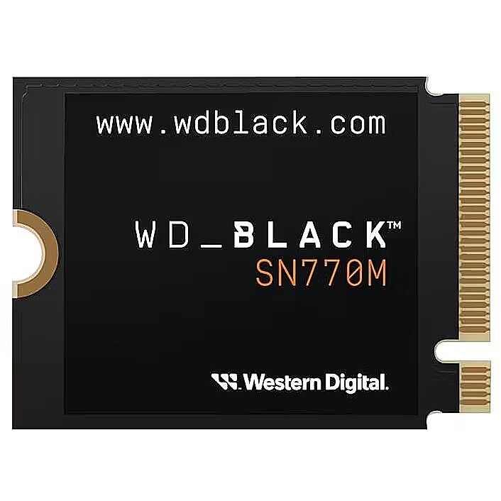 Description - WD Black SN770M SSD Take it to the next level with WD_BLACK M.2 2230 NVMe SSD Expand the memory of your portable console or laptop compatible with M.2 2230 drives with the WD_BLACK SN770M NVMe SSD drive with a capacity of up to 2 TB. This M.2 2230 SSD features a PCIe Gen 4.0 interface for speeds of up to 5,150 MB/s (1TB and 2TB models) and supports Western Digital's nCache 4.0 and Microsoft's DirectStorage. This allows you to take your game library anywhere in the world to load games and load new levels at lightning-fast speeds. And for even greater peace of mind, customize your drive with Western Digital Dashboard software (Windows only). PLAY WITHOUT WORRY Introducing WD_BLACK SN770M SSD, the first M.2 2230 NVMe SSD built on the trust gamers place in our brand. INCREASE THE CAPABILITIES OF YOUR PORTABLE CONSOLE Expand the capabilities of compatible portable consoles like ASUS ROG Ally and Steam Deck with transfer speeds up to 5150 MB/s (1TB and 2TB models), and install games and load new levels with blazingly fast speeds. MORE GAMES FOR YOUR TRAVEL Take your game library anywhere in the world with proven Western Digital TLC NAND storage with capacities up to 2 TB. UNCOMPROMISING FEATURES Get ready for a truly immersive experience with exclusive gamer-focused features like PCIe Gen 4.0, Western Digital's nCache 4.0, and Microsoft's DirectStorage. ALSO COMPATIBLE WITH ULTRA-THIN PCS Breathe new life into your M.2 2230 SSD-compatible laptop, such as Microsoft Surface or Dell, by expanding its memory. A BRAND THAT PLAYERS TRUST Customize your 5-year limited warranty drive with Western Digital Dashboard software (Windows only).