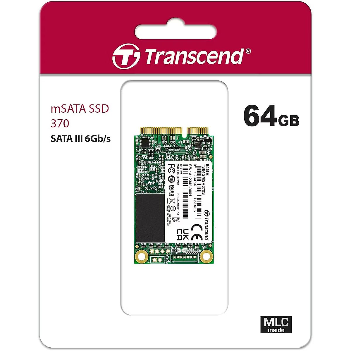 Этот SSD бренда Transcend имеет вместимость 64 GB и формат mSATA.