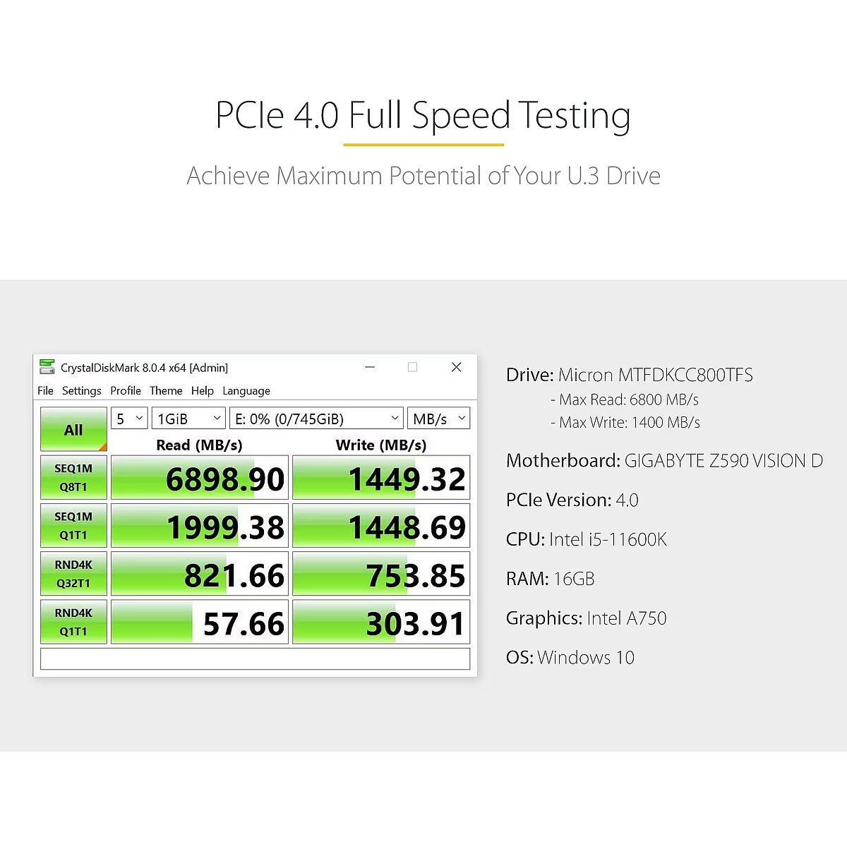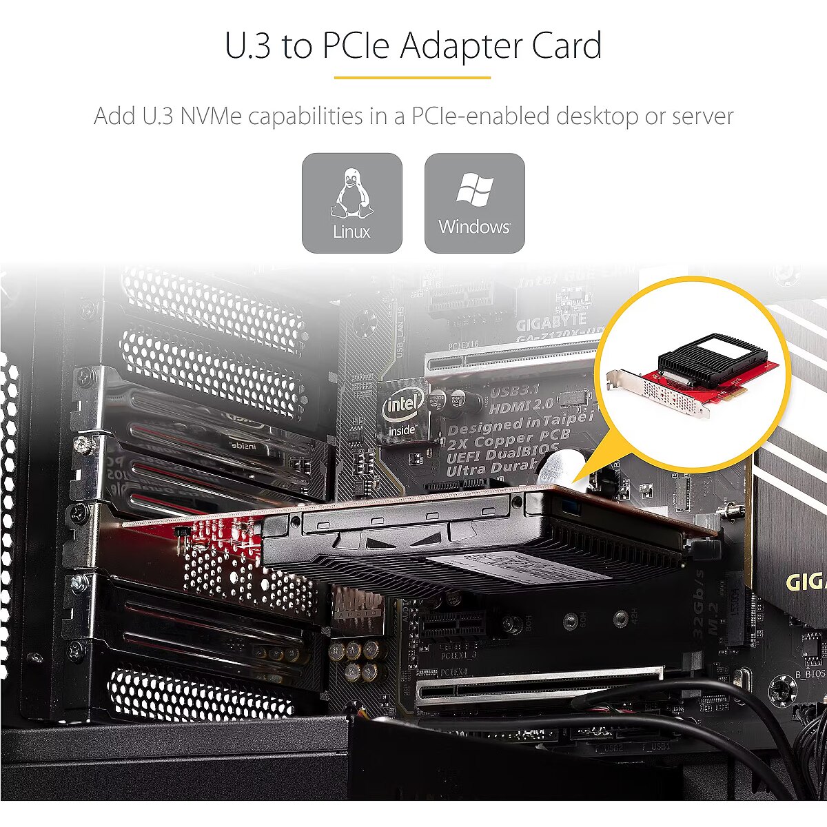 Title - StarTech.com U.3 to PCIe Adapter Card, PCIe 4.0 x4 Adapter For 2.5" U.3 NVMe SSDs, SFF-TA-1001 PCI Express Add-in Card for Desktops/Servers, TAA Compliant - OS Independent