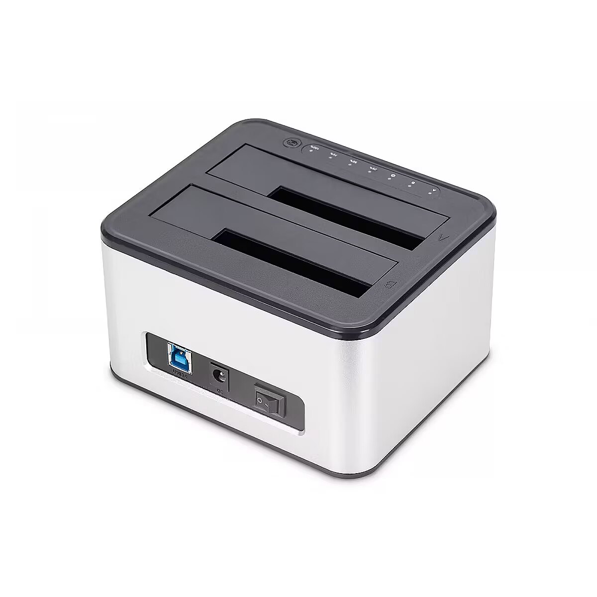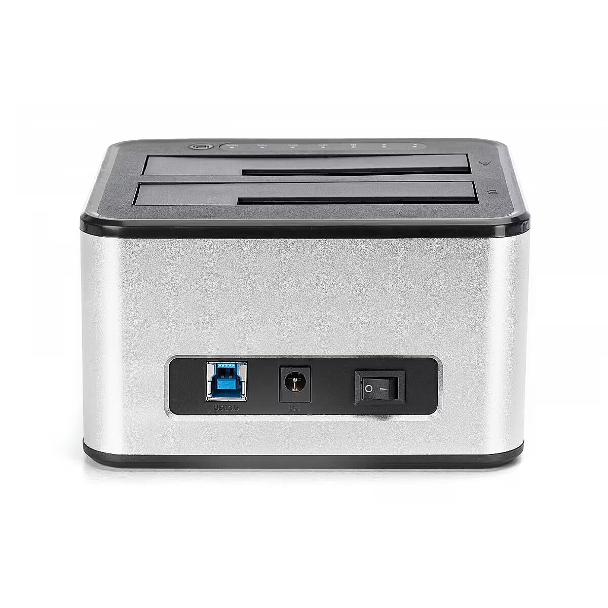 Other features - Connections: USB 3.0 Compatibility: 2.5" and 3.5" SATA HDDs and SSDs Status Indicators: LED indicators for operation and cloning status Simultaneous Reading: Read and write to two hard drives simultaneously SATA Support: SATA3 for fast data transfer Plug-and-play: No additional software or drivers required