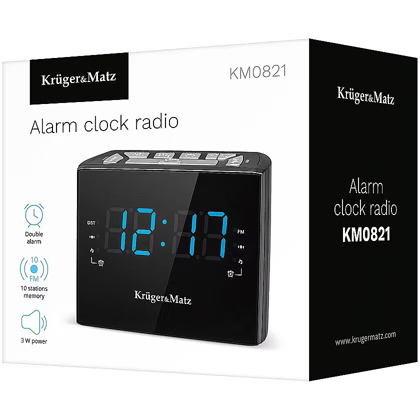 description_ru - Для людей, которым нужно время, чтобы проснуться, функция повтора станет идеальным вариантом. Более того, часы Kruger&Matz с будильником и радио имеют таймер, который позволит вам спокойно заснуть под любимую радиостанцию, ведь по истечении установленного времени устройство автоматически выключится. Технические данные: FM-радио