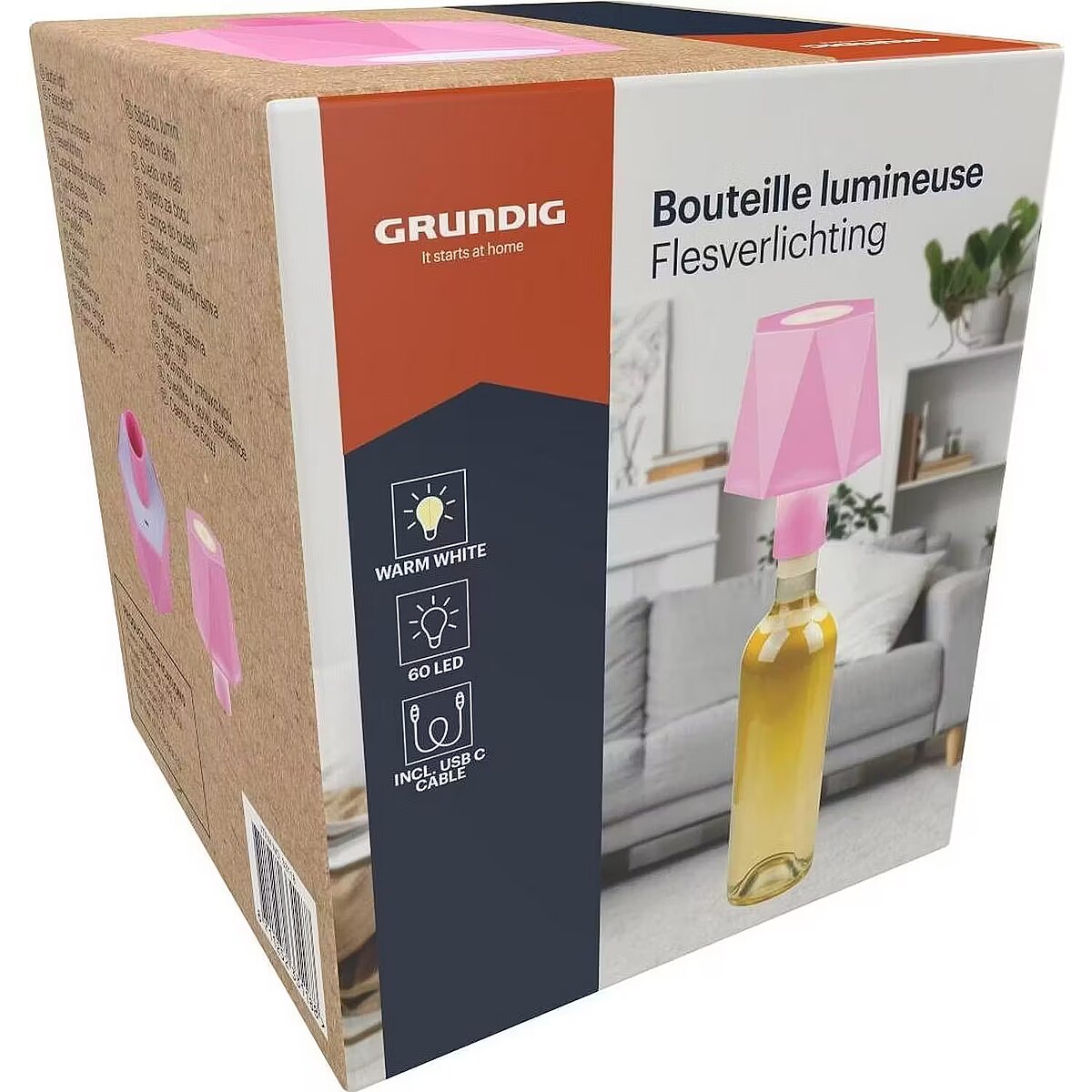 Grundig na butelkę 60LED różowa