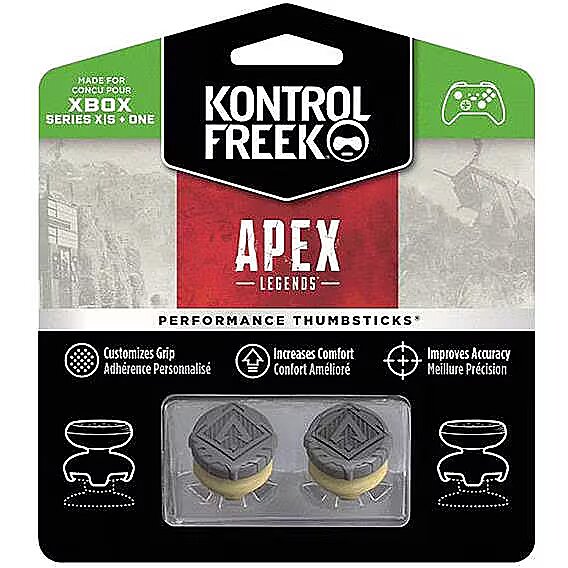 MediumDescription EN - KontrolFreek Apex Legends Performance Thumbsticks® are official thumb grips themed after Apex Legends, designed to enhance precision and control in the game. These dual-tone, raised thumb grips are laser-etched with rubberized material that improves grip, adds comfort, and prevents slipping. With their design, you can become the ultimate Legend in your game.