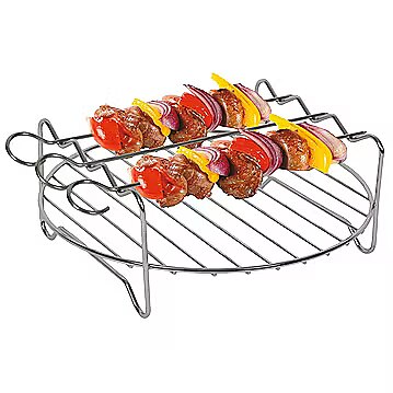 MediumDescription EN - Add a cooking level to your Easy Fry XL! Add a cooking level to your Easy Fry XL with a cake barrel, a pizza pan, a skewers rack and a metal holder. These 4 accessories (7" inches) are compatible with Easy Fry XL EY20 and EY40, ensuring healthy cooking the whole family will enjoy - tasty, flavorful results using hot air. • Less oil and less fat