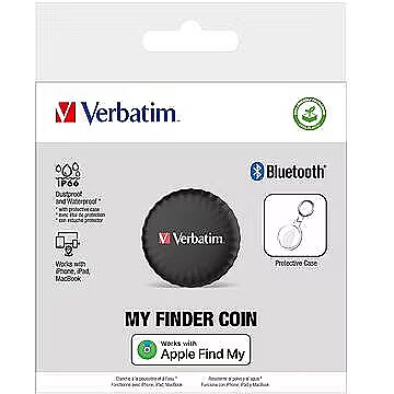 LongDesc - Track your essentials with Verbatim's My Finder Bluetooth TrackerVerbatim’s My Finder is a tracking device that works exclusively with Apple’s Find My App. Simply attach the My Finder to any item that you need to keep track of and you can locate the item through the Find My App on your iPhone, iPad and MacBook.Misplaced keys, bags and other valuables are a thing of the past with Verbatim’s My Finder Bluetooth tracker. Simply attach the versatile tag to the item you want to track and use Apple Find My app to locate it when missing.Within the app’s Lost Mode, you can enter your contact details in the event that your missing item is located by someone else in the Apple Find My network.Locate by sound or mapUtilising the Apple Find My ecosystem, you can easily track your item’s location. If you are in close range, select “Play Sound” in the app and follow the beep to find your lost item. Alternatively, select your missing item in the app and locate it on a map. The whole process is anonymous and encrypted to protect your privacy.Long battery lifeEquipped with a Lithium battery, enjoy over 12 months battery life- no need for frequent battery changes. With IP66 protection the My Finder is water-resistant and dustproof for durability.Smart NotificationsWith smart notifications enabled by default, you’ll receive an alert on your phone when your My Finder is out of your Bluetooth range. Attach it to your laptop bag or backpack, or slip it into your wallet so you don’t walk out the door without them.Never lose your keys, backpack or luggage again!