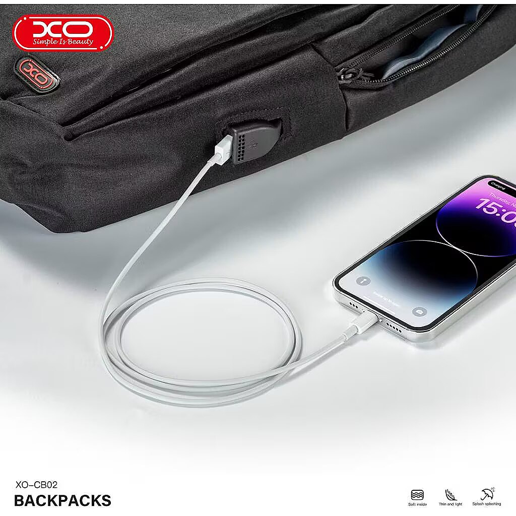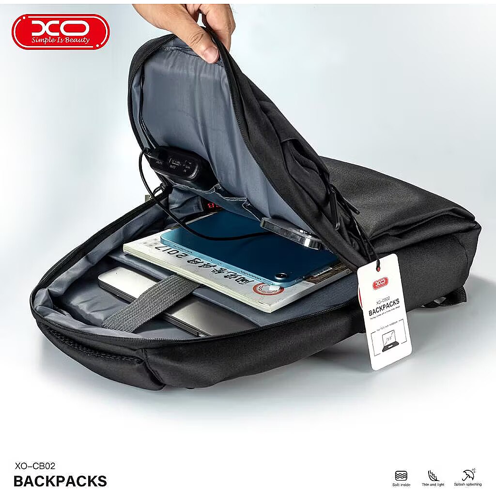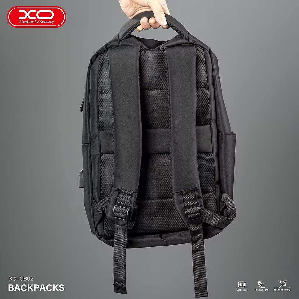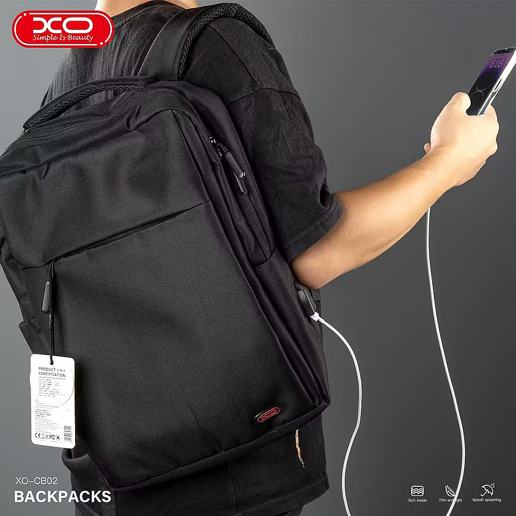 description_en - The XO CB02 15.6" laptop backpack is a stylish and functional choice, perfect for everyday use. Made of scratch- and splash-resistant material, this bag ensures durability and protection in all situations. Multiple pockets and various drawers help you conveniently organize all the necessary items, while the side USB -socket allows you to charge your smart device on the go.The ideal choice for safely and conveniently carrying a laptop up to 15.6" and accessories. Laptop backpack for laptops with a screen up to 15.6 inches Additional pockets for accessories Soft padding Comfortable straps Scratch- and splash-resistant surface