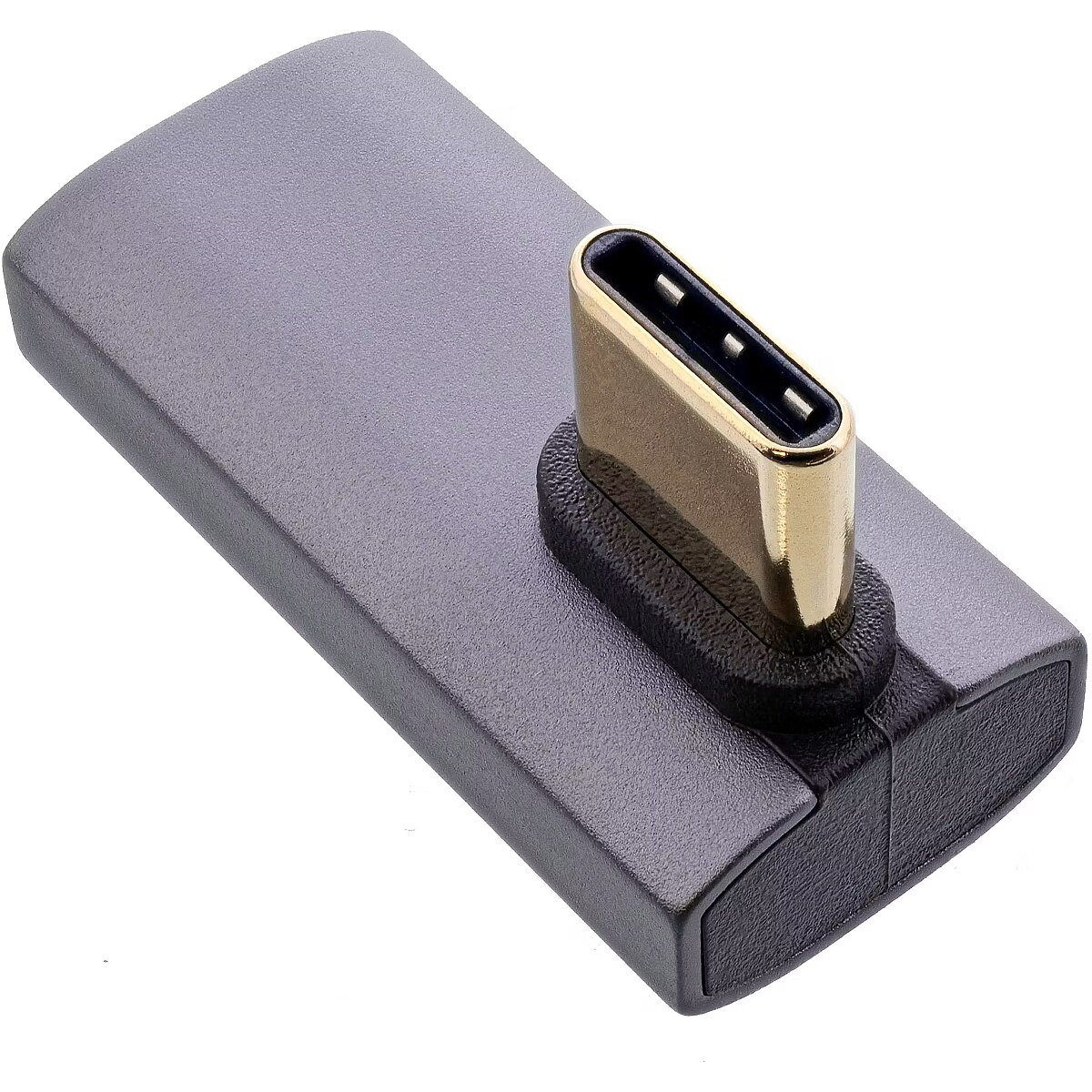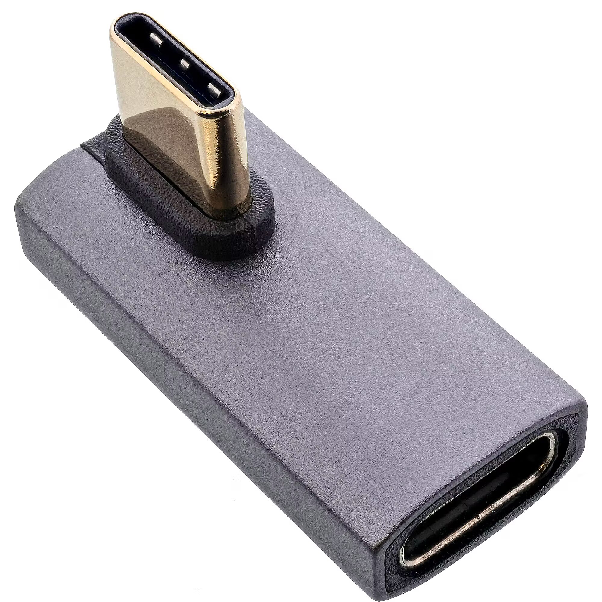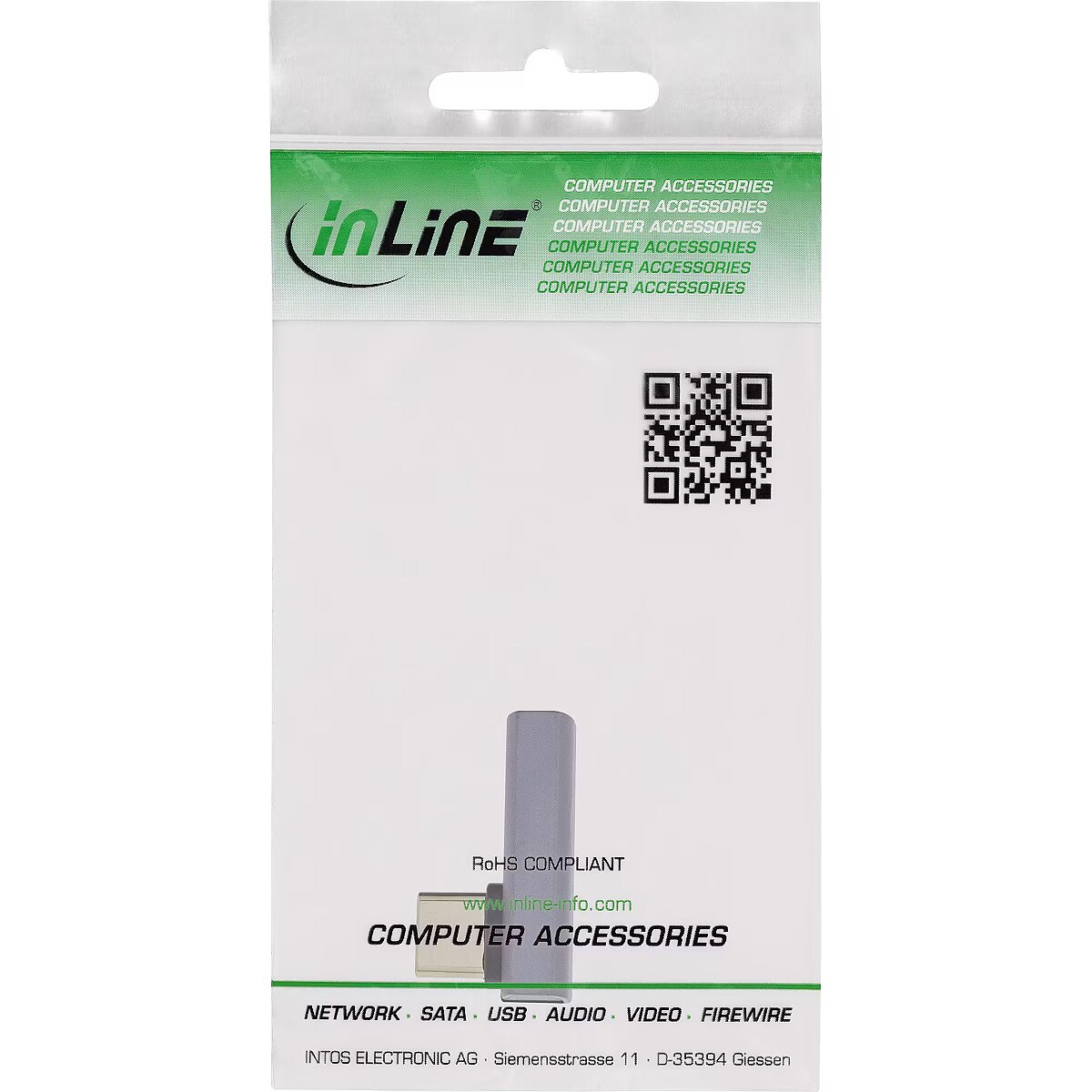 LongDesc - Vertically angled USB4 adapter for space-saving cable routingSupports up to 240 W EPR (48 V / 5 A) for maximum charging powerData transfer at up to 40 Gb/s for efficient work processes8K@60Hz video output for brilliant image qualityCompatible with notebooks, tablets, smartphones and external hard disksThe InLine® USB4 adapter with USB-C plug to USB-C socket in vertical right/left angled design offers maximum performance with optimized cable alignment. The vertical angle enables a particularly space-saving and device-friendly connection solution - ideal for devices with side or top-mounted USB-C ports.With up to 240 W EPR (48 V / 5 A), the adapter ensures reliable fast charging for compatible devices. The 40 Gb/s data rate enables fast file transfers, ideal for SSDs, memory sticks or high-throughput accessories. Thanks to 8K@60Hz video output, the adapter is also suitable for high-resolution monitors and professional image reproduction.The sturdy aluminum housing in grey ensures durability and a high-quality look. The USB4 compatibility makes it a future-proof choice for IT professionals, system houses and technical applications.Connections: USB-C plug to USB-C socket, vertical right/left angledCompatibility: USB4 / USB 3.2 / USB 2.0 / Thunderbolt 3 & 4Material: aluminumColor: grey