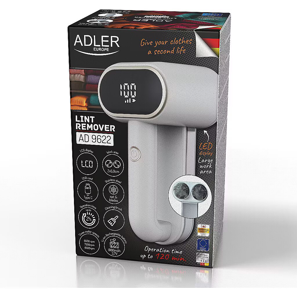Name - Adler | Lint remover | AD 9622 | White | Rechargeable battery | 10 W