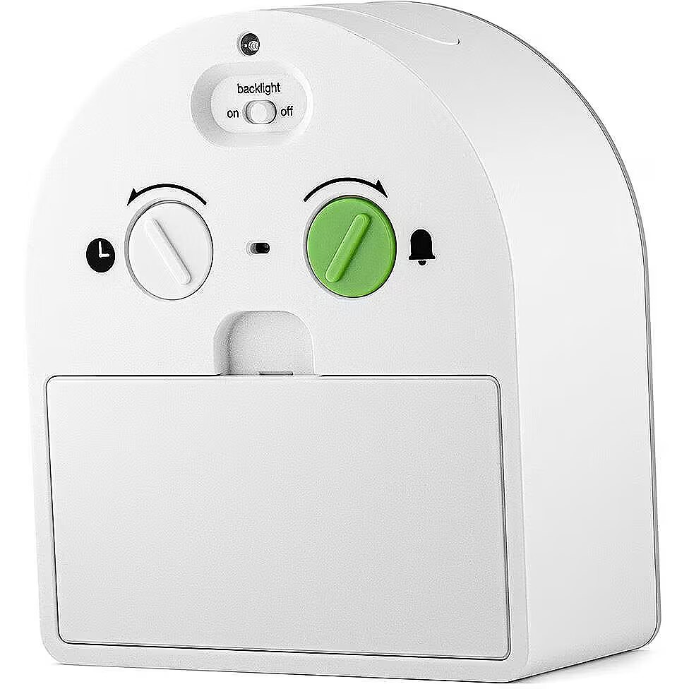 ShortSummaryDescription - Braun BC22, Quartz alarm clock, Round, White, Yellow, 12h, Buzzer, Battery