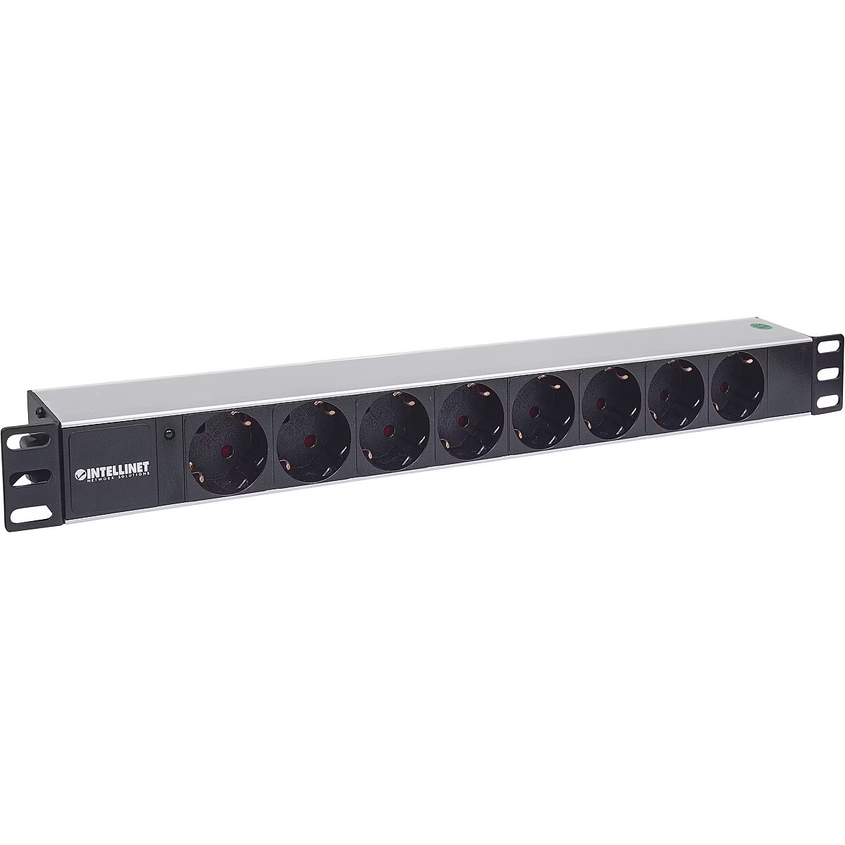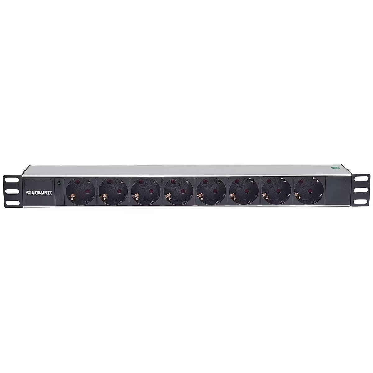 ShortSummaryDescription - Intellinet 19" 1U Rackmount 8-Output Power Distribution Unit (PDU) EU CEE 7/3 Outlets, With LED Indicator Only, No Surge Protection, Built-in 1.8m Power Cord with EU CEE 7/4 Plug, 1U, Horizontal, Aluminium, Aluminium, Black, 8 AC outlet(s), Type F