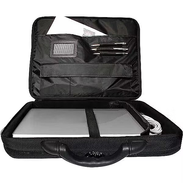 description_en - Finally even users of 17" widescreen Notebooks can use a bag to carry their device! Thanks to this bag transport is made easy and protected, the extra compartments even offer space for documents, business cards, mobile phone, etc. High quality design with stable handle and comfortable shoulder belt Notebook compartment with stable frame and soft padding, additional organizer compartment for pens and business cards 2 document compartments Stable handle for high carrying comfort and better quality impression