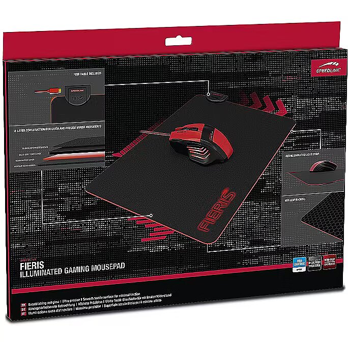 description_en - Want a mousepad that offers total pixel-perfect gliding accuracy and is optimised to handle any setting and sensor resolution no matter which mouse type you prefer? Sounds like the perfect mousepad, right? It is – and it’s called the FIERIS. Enjoy complete control in terms of speed and pixel-precise precision thanks to its tough build and non-slip backing. Plus, immerse your surroundings in a breathtaking red glow with the FIERIS’s slimline lightpipe – a stunning feature that rounds off this amazing pad.
