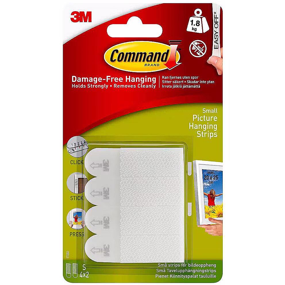 description_en - Command self-adhesive Velcro strips are designed for attaching picture frames to the wall. Velcro strips do not damage the wall or picture frame, and do not leave glue marks. With them, you can attach the picture to the wall with just a few clicks, and removing the strips is as easy as installing them. Maximum load 1.8 kg Maximum picture frame size: 20 × 25 cm Will not damage the wall or picture frame Pack of 8 velcro straps
