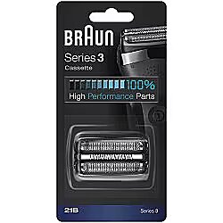 LongSummaryDescription - Braun Series 3 21B Electric Shaver Head Replacement Cassette – Black. Product colour: Black, Material: Plastic, Metal, Compatibility: geschikt voor de scheerapparaten 300s, 301s, 310s. Country of origin: Germany. Package width: 22 mm, Package depth: 80 mm, Package height: 160 mm. Quantity per pack: 1 pc(s), Master (outer) case width: 364 mm, Master (outer) case length: 548 mm