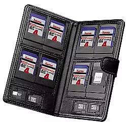 LongDesc - - Case for organized storage of 8 SD and 4 microSD cards- Incl. specially developed safety insert- Practical magnetic fastener- Dimensions: W: 8.0 x D: 13.7 x H: 1.6 cm- Capacity: Max. 12 Cards- Colour: Black- Material: Koskin- Model: Bag- Suitable for: SD & MMC