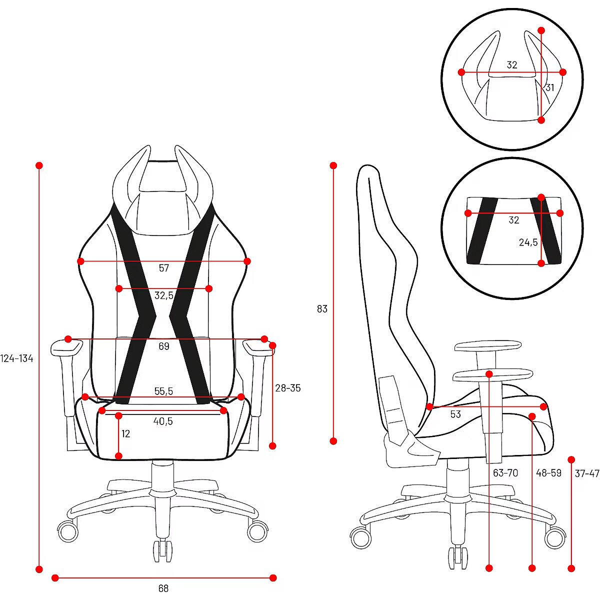 Dane techniczne: Głębokość siedziska - 53 cm