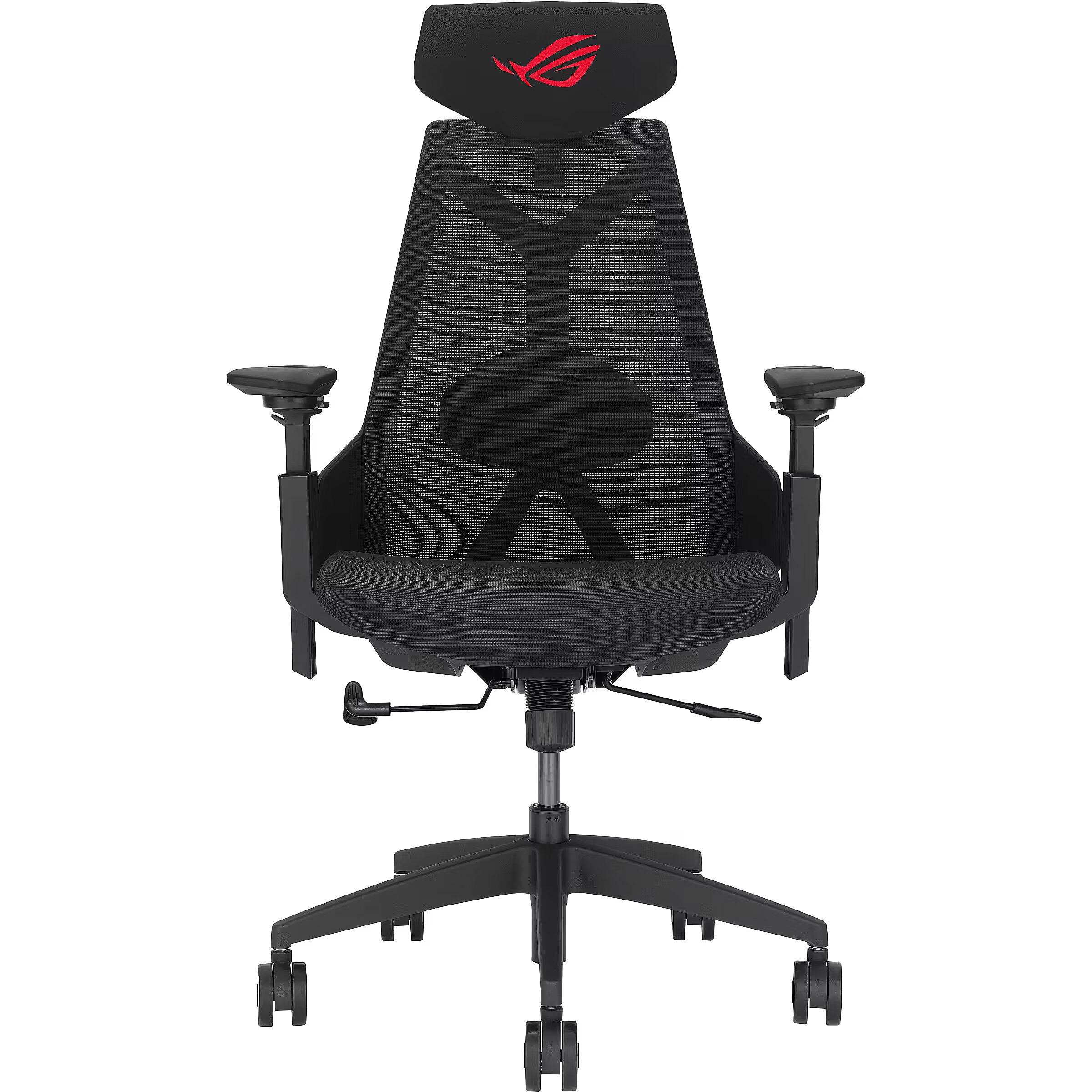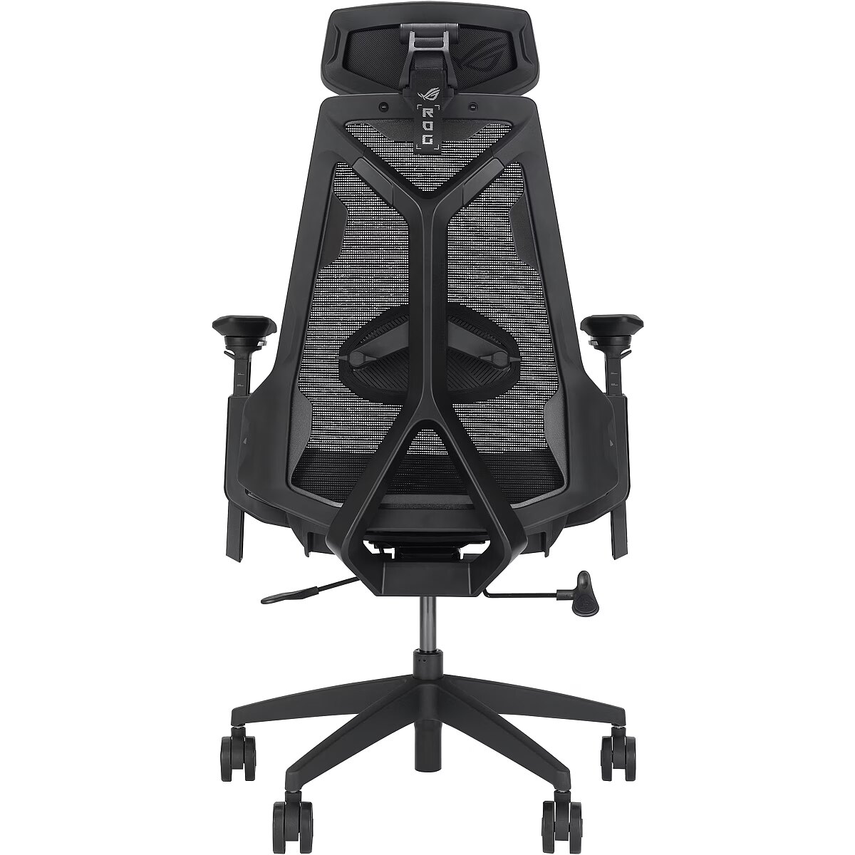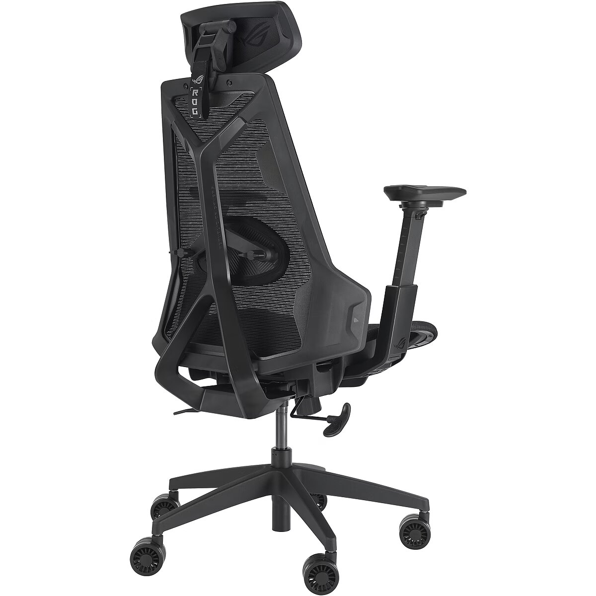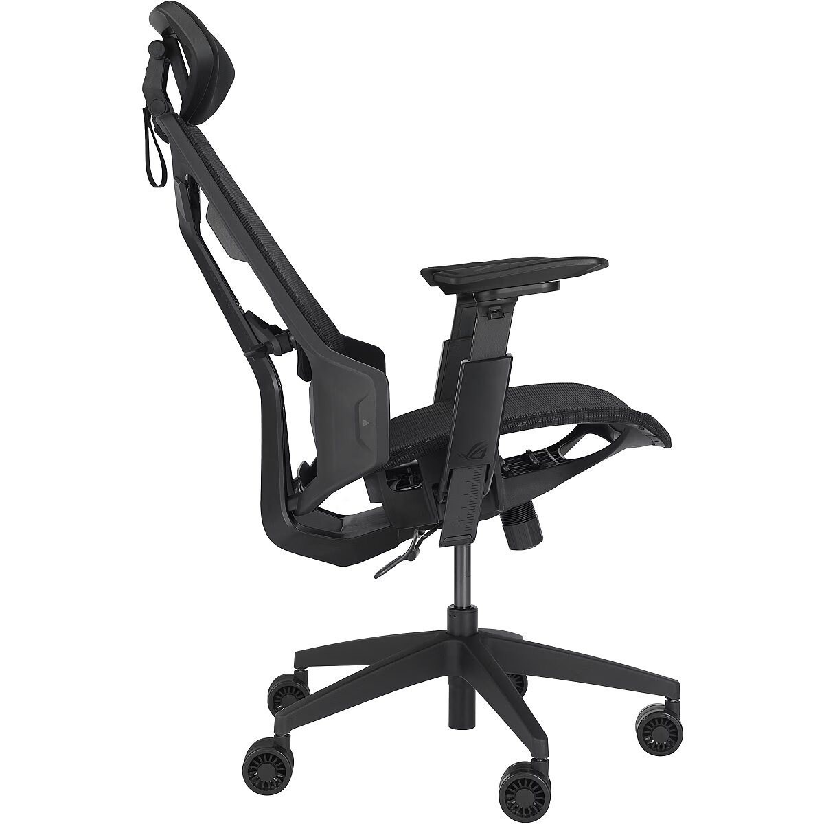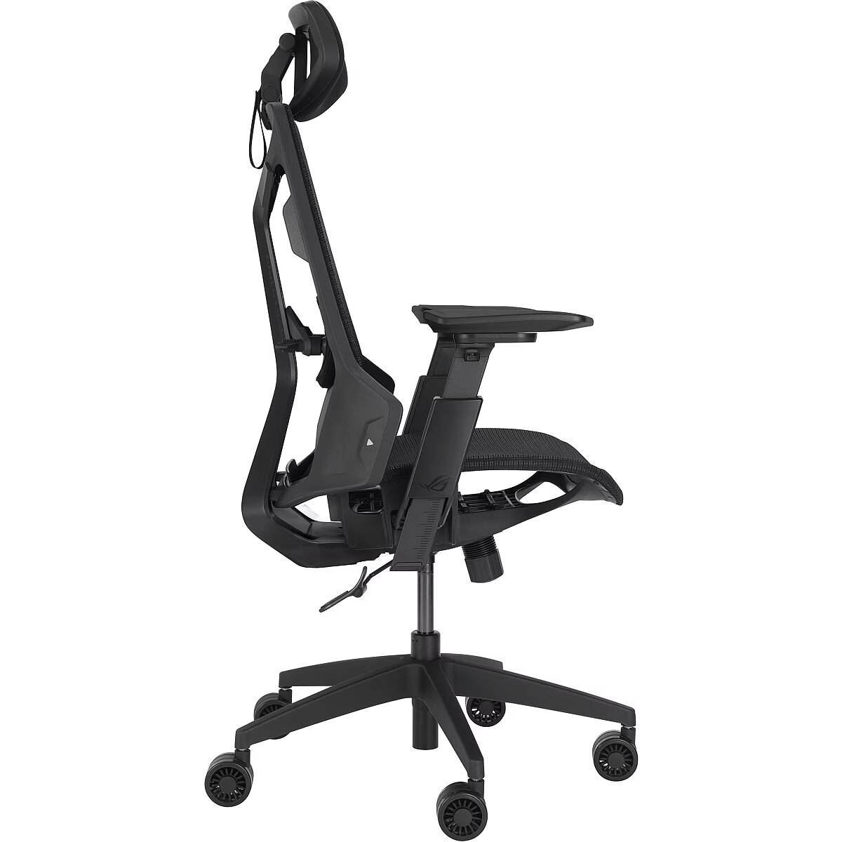 ROG Destrier Core ergo gaming chair with futuristic cyborg aesthetic, versatile seat adjustments for the perfect posture, mobile gaming arm support mode, and crafted from durable polyamide nylon and breathable mesh for comfortable marathon gaming sessions. Cyborg-inspired design: Exoskeletal design adds futuristic style to any gaming setup. Perfect fit: Optimal adjustability ensures the best possible support and comfort for gaming and more. Made for mobile gaming: Special mode raises armrests up to 14 cm to elevate arms to the ideal position for mobile gaming; plus, armrests can be rotated 360°. Crafted from firmly materials: Constructed with a polyamide nylon, breathable mesh and comfortable PU foam to provide sublime support and comfort.
